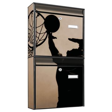 FUNKTION: Die Burg-Wächter Briefkastenanlage mit Motiv Tip In bietet Ihnen ausreichend Fassungsvermögen um auch A4 und C4 Sendungen zu empfangen. Das integrierte Namensschild lässt sich individuell beschriften. Wählen Sie aus den Grundfarben weiß, silber und schwarz. DESIGN: Die 2 Briefkästen haben ein ansprechendes und zeitloses Design, ohne dabei auf Funktionalität zu verzichten. Das Material ist sehr stabil, wetterfest und rostfrei. Durch das Motiv Tip In werden die Postkästen zu einem Blickfang. DETAILS: Die Postkästen bestehen aus verzinktem Stahl der zusätzlich mit Klarlack versiegelt wurde. Die Kästen sind gesamt 64,5cm hoch, 36,2cm breit und 10cm tief. Das Motiv besteht aus einer wetter- und UV-festen Folie, die Ihren Briefkasten zusätzlich vor Kratzern schützt. Die Postkästen werden mit Montagematerial, je einem Namensschild und je zwei Schlüsseln geliefert. NUTZEN: Das Briefkastenset eignet sich für die Wandmontage, die Größe bietet genügend Platz für Sendungen aller Art. Das zeitlose Design sowie die stabile Bauart bieten Ihnen einen treuen Begleiter für Ihre Post. BANJADO:
