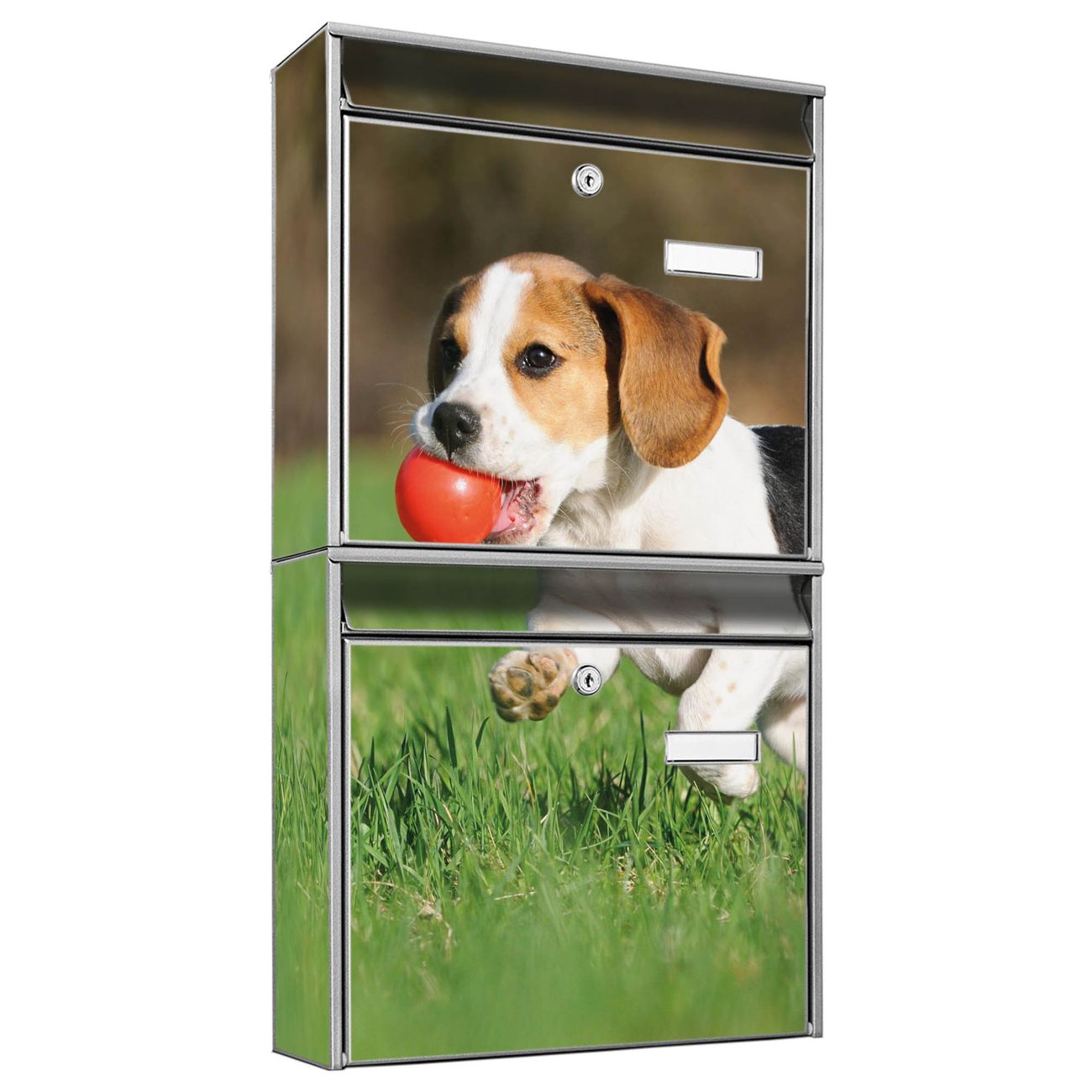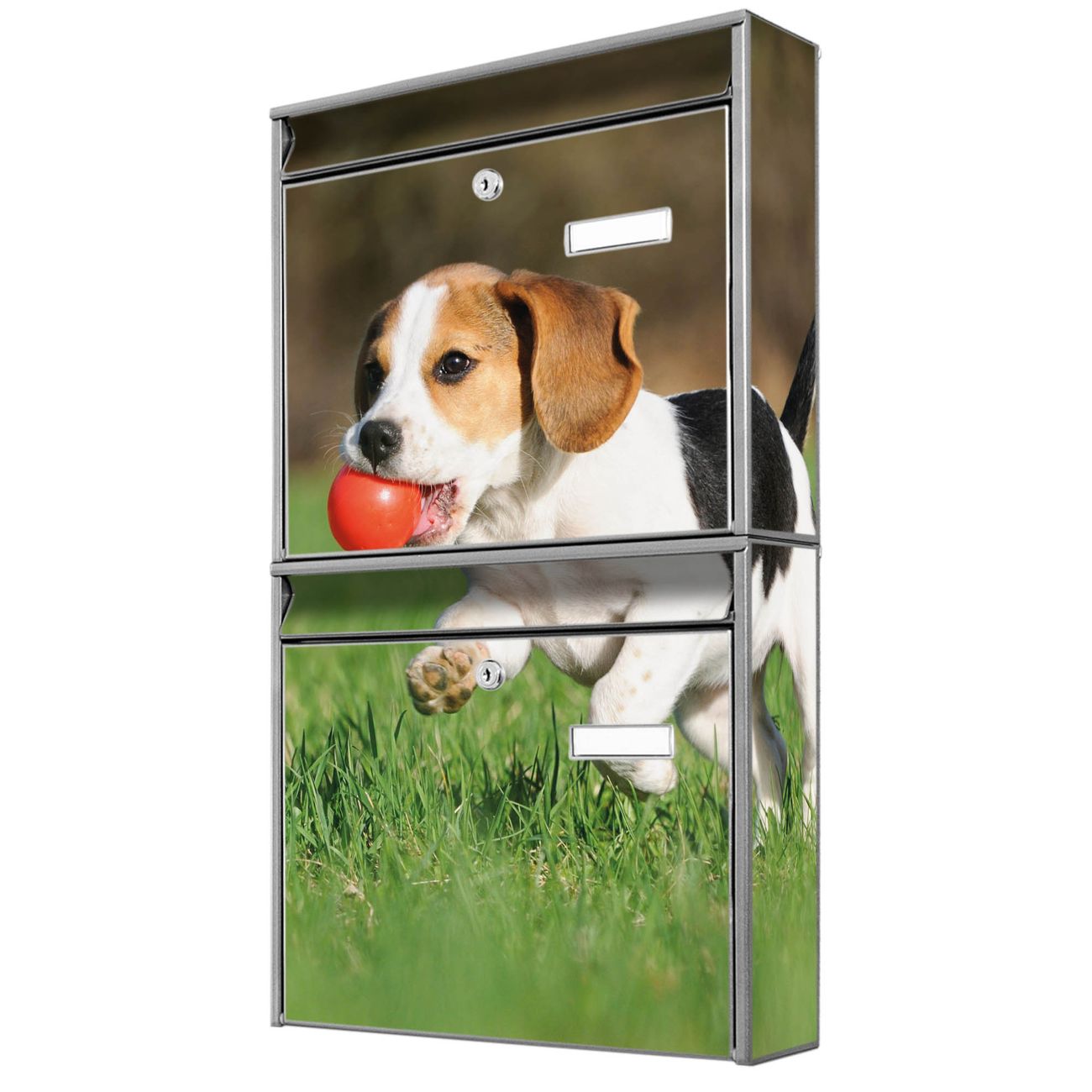 FUNKTION: Die Burg-Wächter Briefkastenanlage mit Motiv Trixi bietet Ihnen ausreichend Fassungsvermögen um auch A4 und C4 Sendungen zu empfangen. Das integrierte Namensschild lässt sich individuell beschriften. Wählen Sie aus den Grundfarben weiß, silber und schwarz. DESIGN: Die 2 Briefkästen haben ein ansprechendes und zeitloses Design, ohne dabei auf Funktionalität zu verzichten. Das Material ist sehr stabil, wetterfest und rostfrei. Durch das Motiv Trixi werden die Postkästen zu einem Blickfang. DETAILS: Die Postkästen bestehen aus verzinktem Stahl der zusätzlich mit Klarlack versiegelt wurde. Die Kästen sind gesamt 64,5cm hoch, 36,2cm breit und 10cm tief. Das Motiv besteht aus einer wetter- und UV-festen Folie, die Ihren Briefkasten zusätzlich vor Kratzern schützt. Die Postkästen werden mit Montagematerial, je einem Namensschild und je zwei Schlüsseln geliefert. NUTZEN: Das Briefkastenset eignet sich für die Wandmontage, die Größe bietet genügend Platz für Sendungen aller Art. Das zeitlose Design sowie die stabile Bauart bieten Ihnen einen treuen Begleiter für Ihre Post. BANJADO: