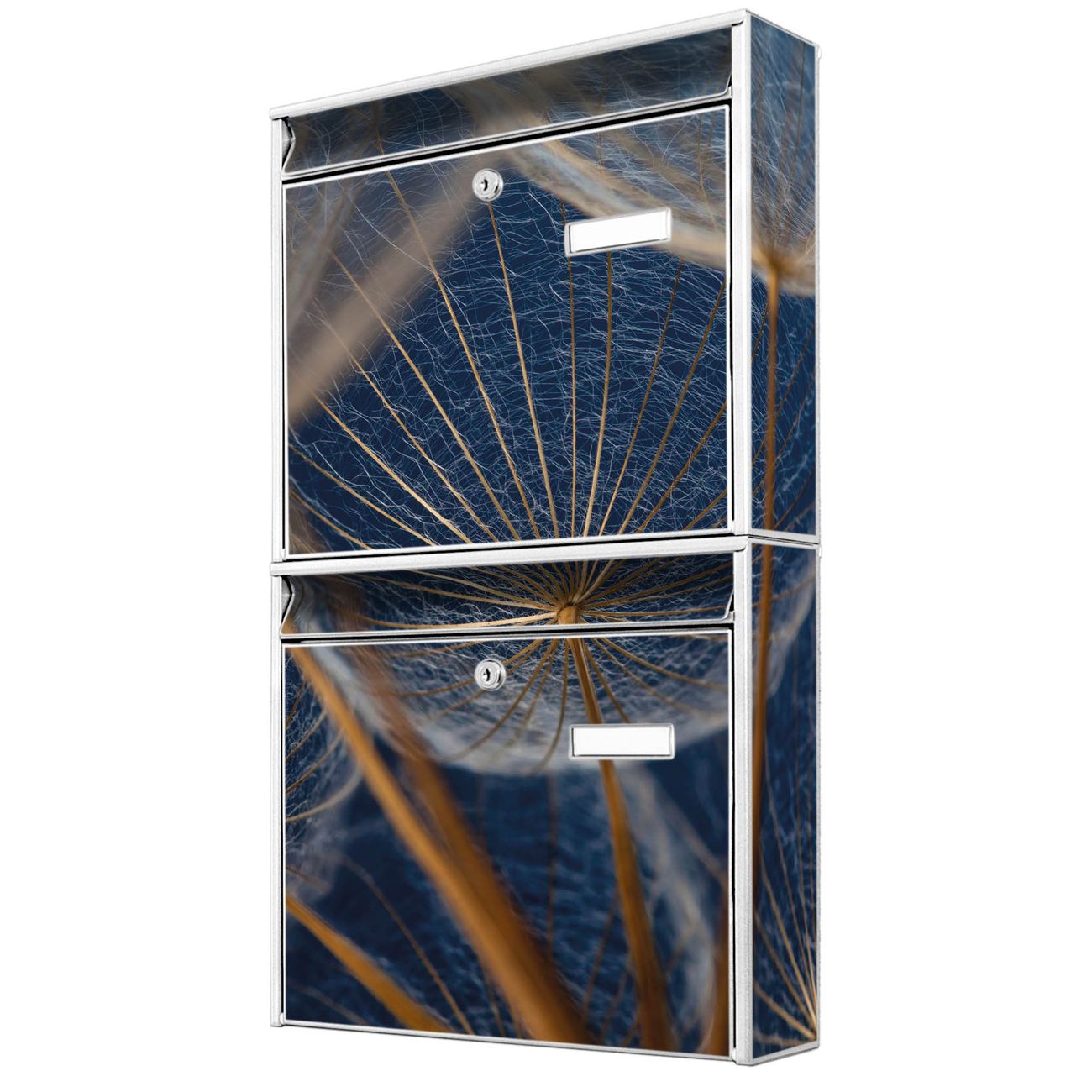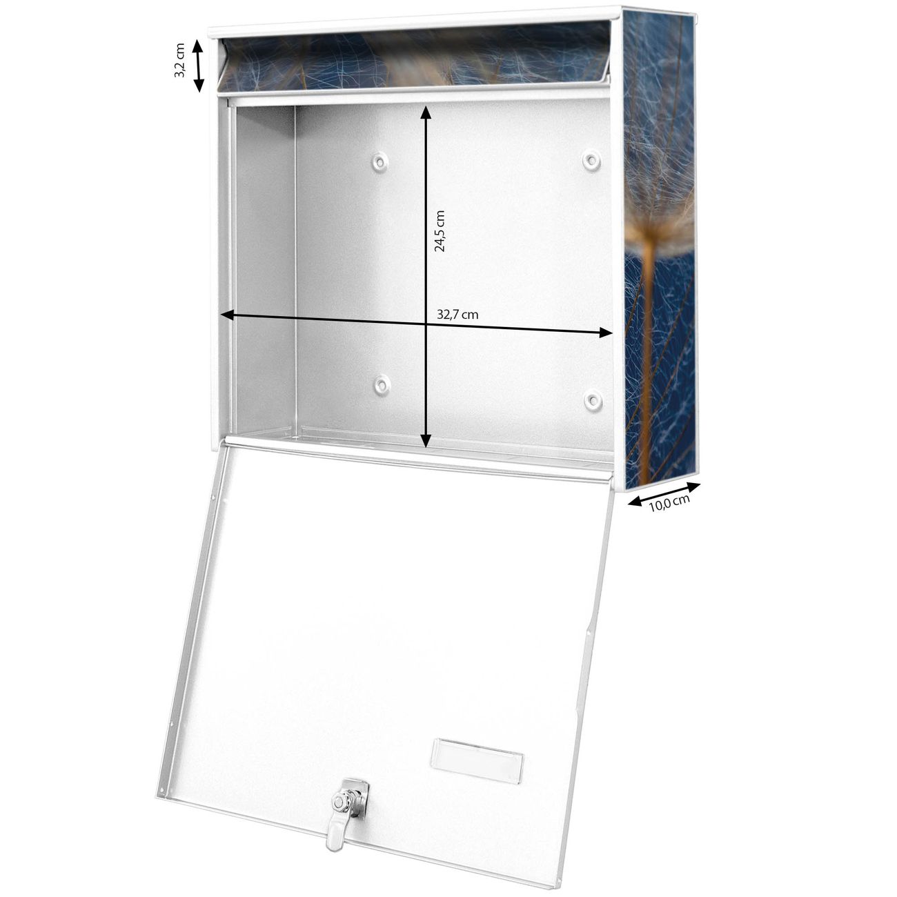 FUNKTION: Die Burg-Wächter Briefkastenanlage mit Motiv Verblüht bietet Ihnen ausreichend Fassungsvermögen um auch A4 und C4 Sendungen zu empfangen. Das integrierte Namensschild lässt sich individuell beschriften. Wählen Sie aus den Grundfarben weiß, silber und schwarz. DESIGN: Die 2 Briefkästen haben ein ansprechendes und zeitloses Design, ohne dabei auf Funktionalität zu verzichten. Das Material ist sehr stabil, wetterfest und rostfrei. Durch das Motiv Verblüht werden die Postkästen zu einem Blickfang. DETAILS: Die Postkästen bestehen aus verzinktem Stahl der zusätzlich mit Klarlack versiegelt wurde. Die Kästen sind gesamt 64,5cm hoch, 36,2cm breit und 10cm tief. Das Motiv besteht aus einer wetter- und UV-festen Folie, die Ihren Briefkasten zusätzlich vor Kratzern schützt. Die Postkästen werden mit Montagematerial, je einem Namensschild und je zwei Schlüsseln geliefert. NUTZEN: Das Briefkastenset eignet sich für die Wandmontage, die Größe bietet genügend Platz für Sendungen aller Art. Das zeitlose Design sowie die stabile Bauart bieten Ihnen einen treuen Begleiter für Ihre Post. BANJADO: