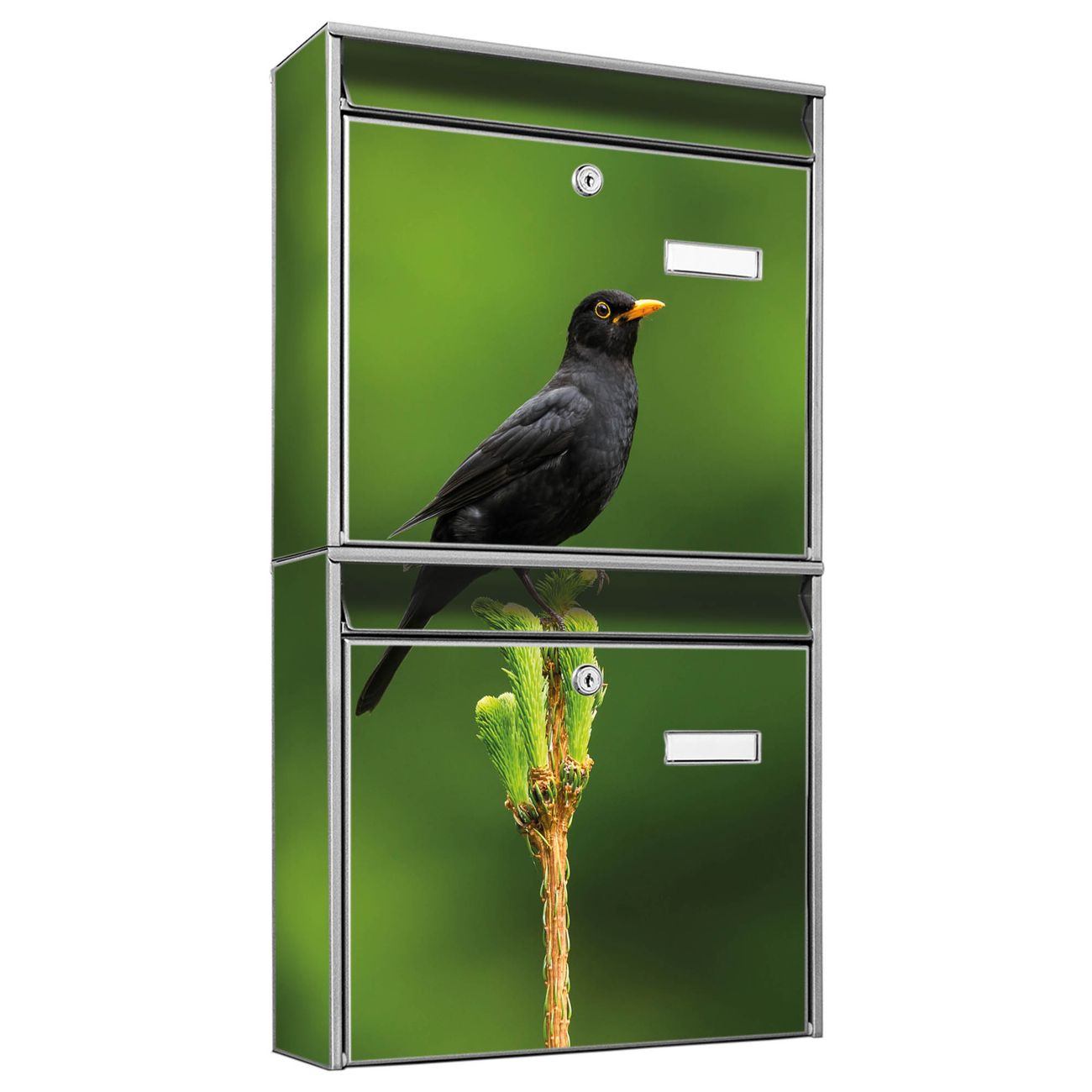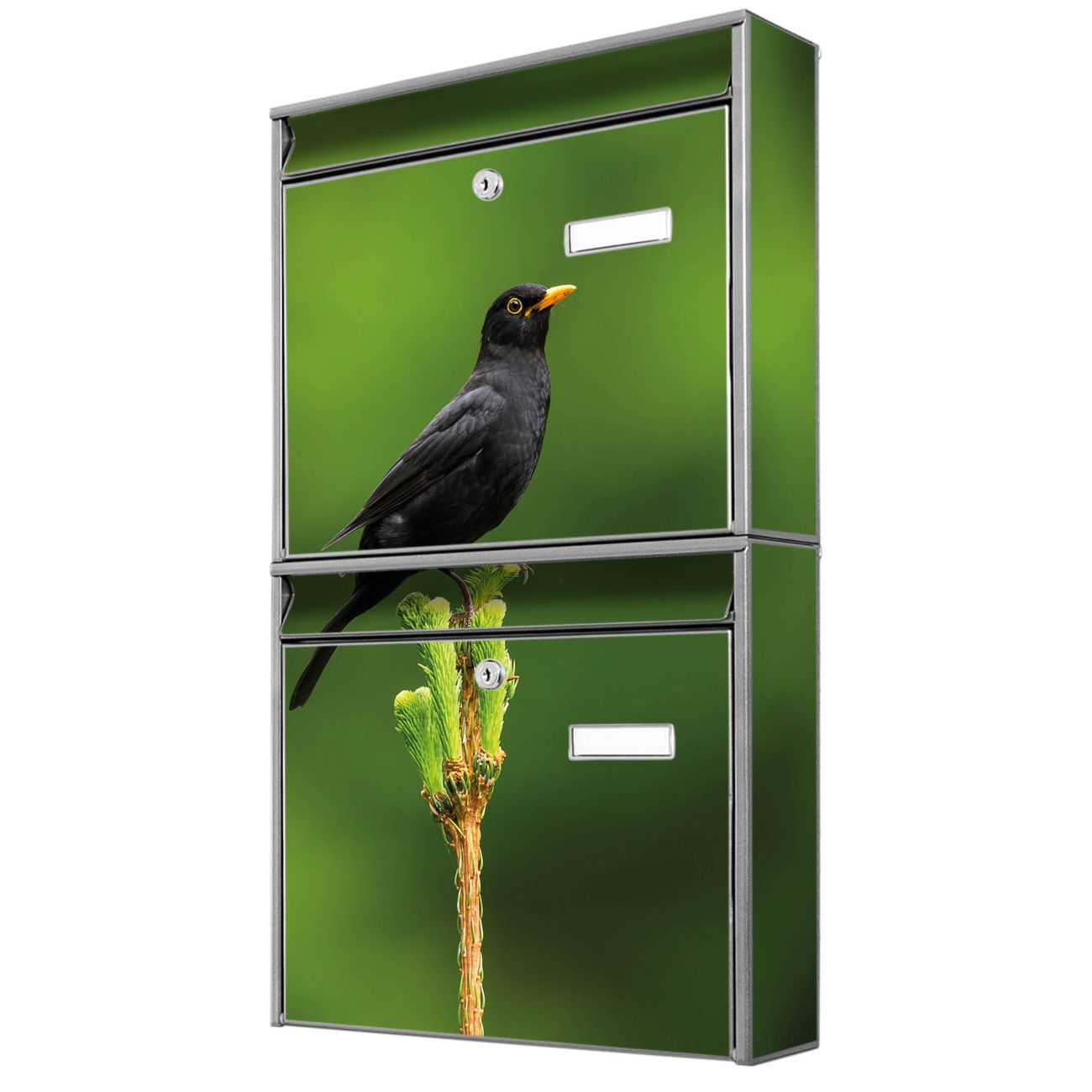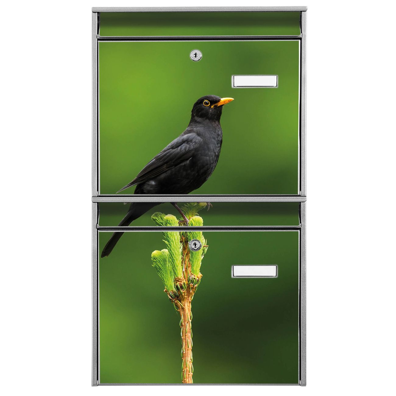 Doppelbriefkasten hoch Vogel auf Tannenzweig