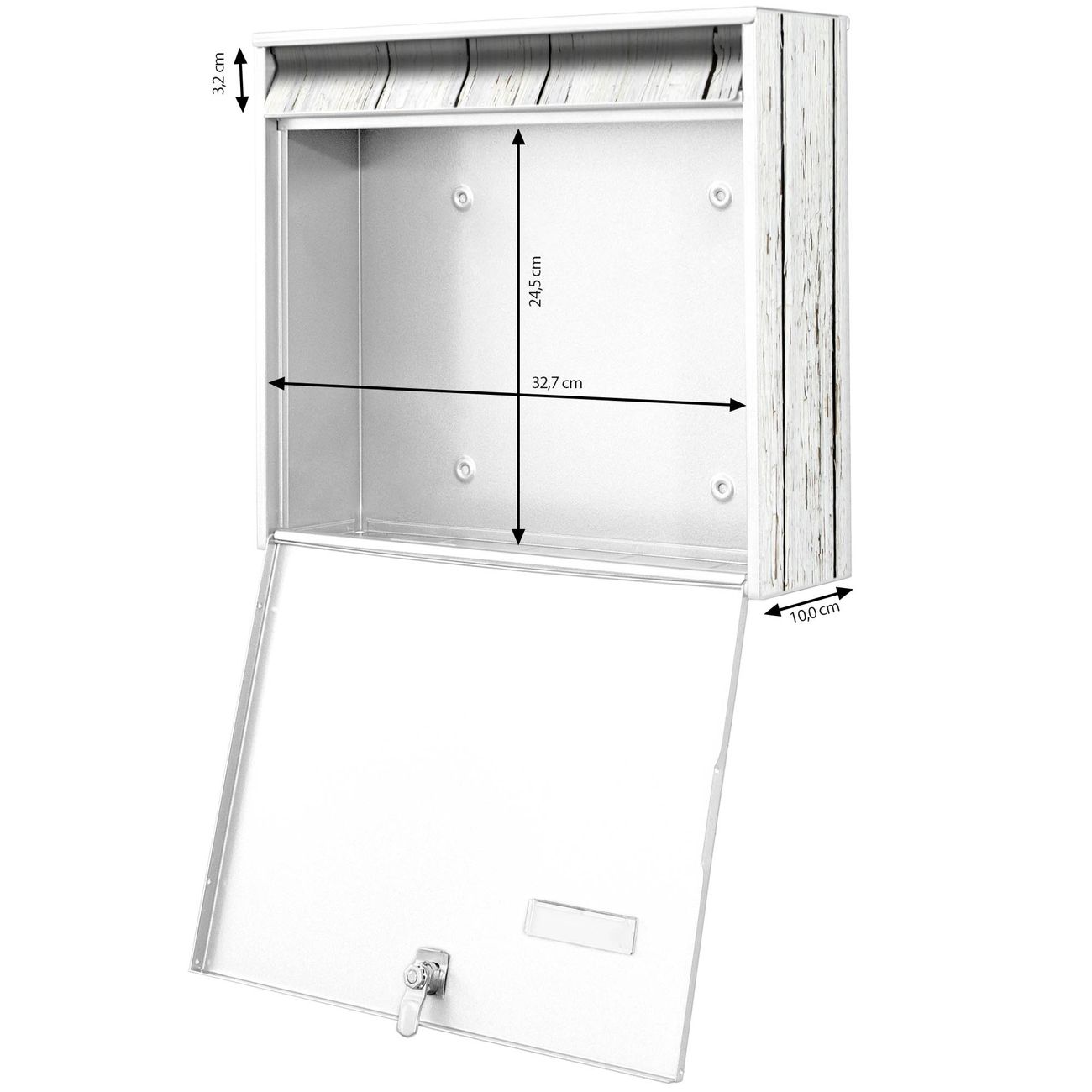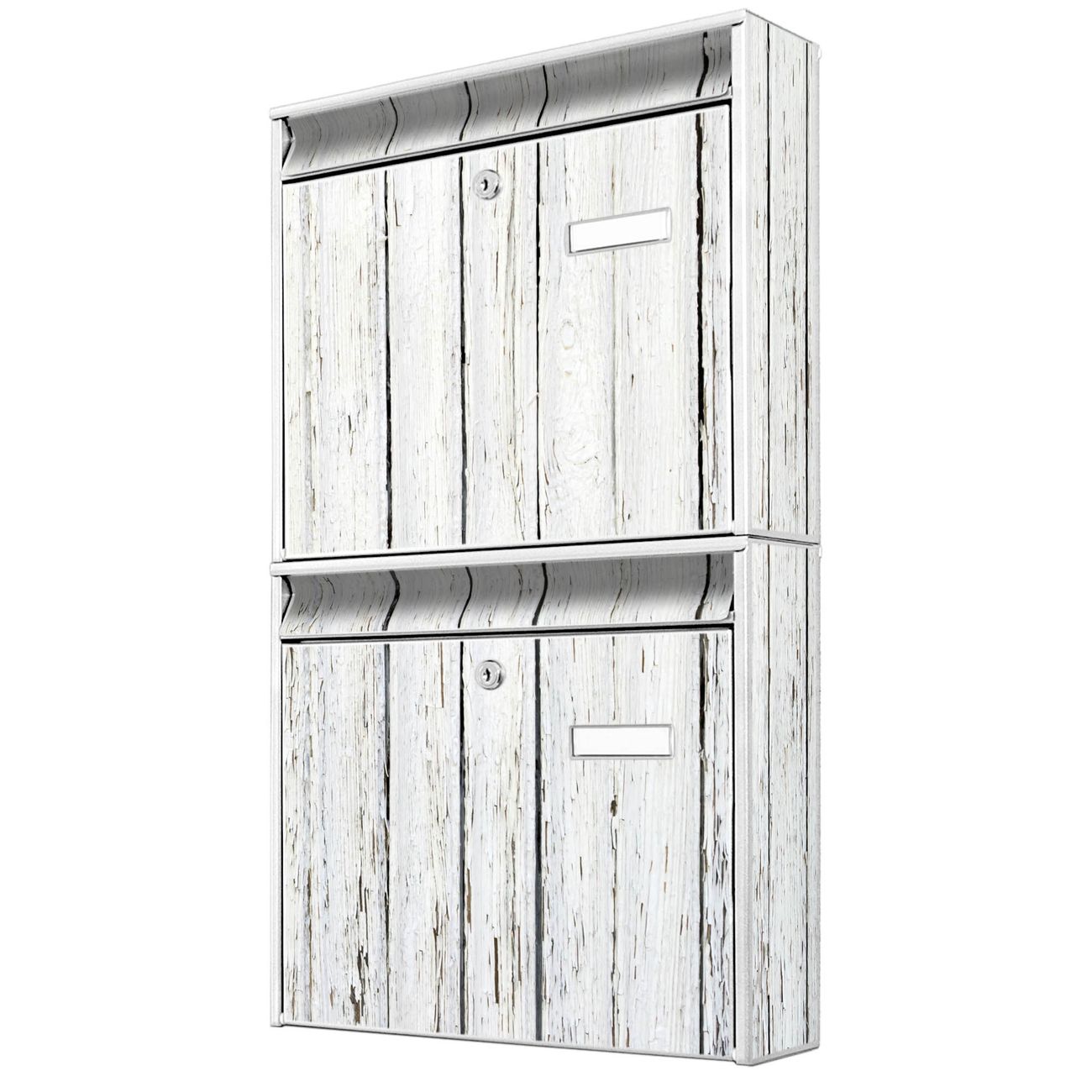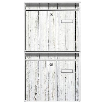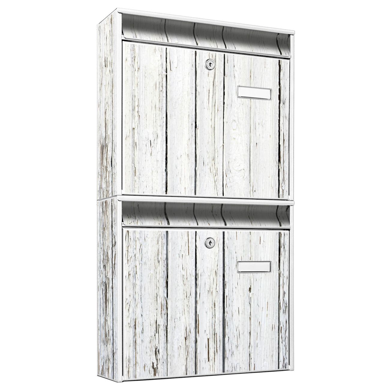 FUNKTION: Die Burg-Wächter Briefkastenanlage mit Motiv Weißer Bretterzaun bietet Ihnen ausreichend Fassungsvermögen um auch A4 und C4 Sendungen zu empfangen. Das integrierte Namensschild lässt sich individuell beschriften. Wählen Sie aus den Grundfarben weiß, silber und schwarz. DESIGN: Die 2 Briefkästen haben ein ansprechendes und zeitloses Design, ohne dabei auf Funktionalität zu verzichten. Das Material ist sehr stabil, wetterfest und rostfrei. Durch das Motiv Weißer Bretterzaun werden die Postkästen zu einem Blickfang. DETAILS: Die Postkästen bestehen aus verzinktem Stahl der zusätzlich mit Klarlack versiegelt wurde. Die Kästen sind gesamt 64,5cm hoch, 36,2cm breit und 10cm tief. Das Motiv besteht aus einer wetter- und UV-festen Folie, die Ihren Briefkasten zusätzlich vor Kratzern schützt. Die Postkästen werden mit Montagematerial, je einem Namensschild und je zwei Schlüsseln geliefert. NUTZEN: Das Briefkastenset eignet sich für die Wandmontage, die Größe bietet genügend Platz für Sendungen aller Art. Das zeitlose Design sowie die stabile Bauart bieten Ihnen einen treuen Begleiter für Ihre Post. BANJADO: