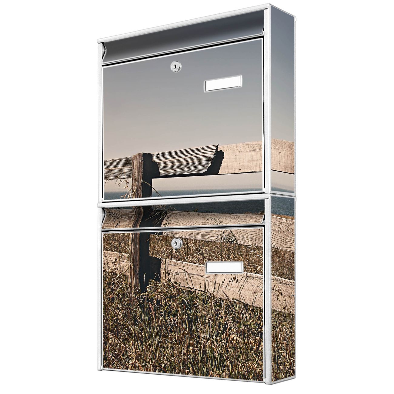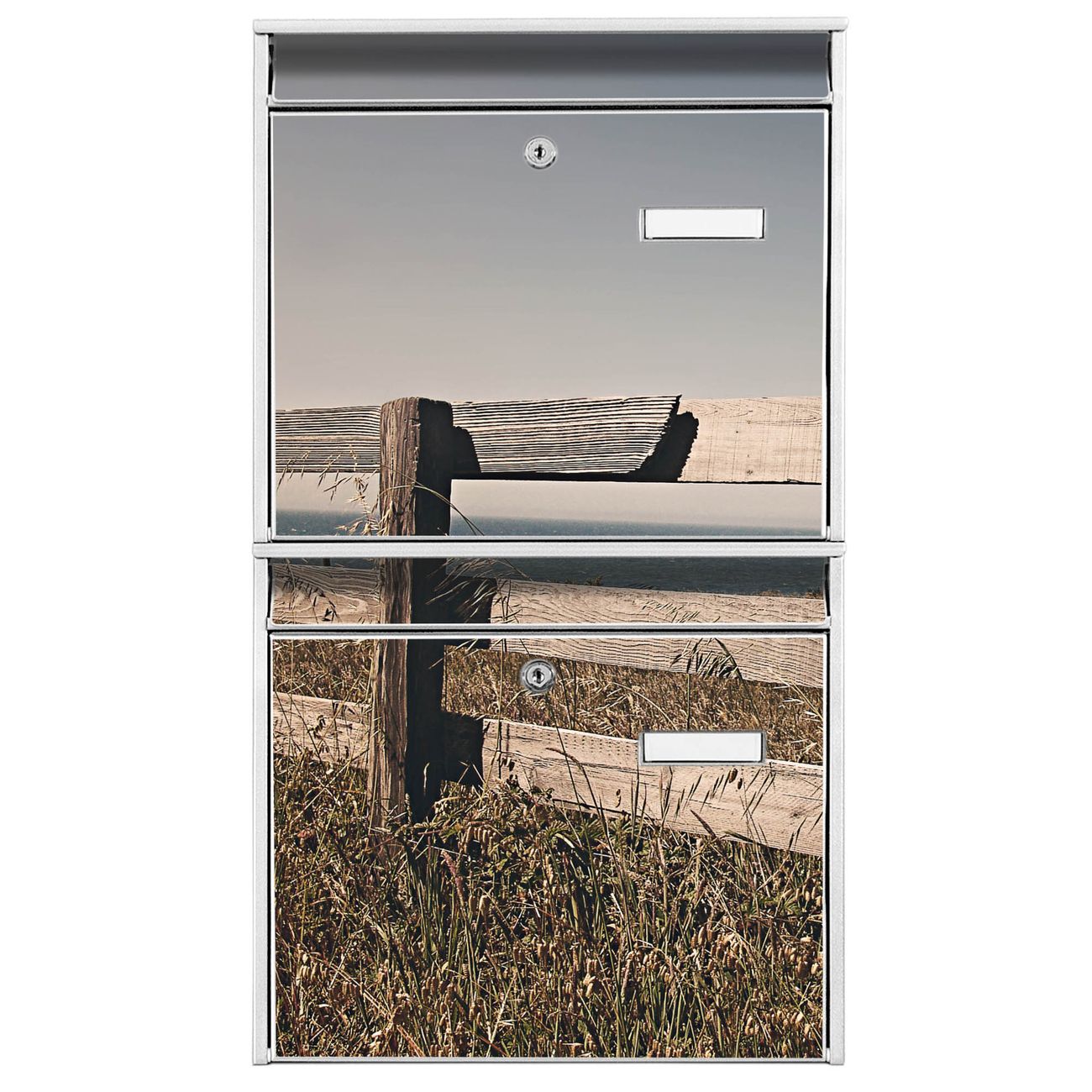 Doppelbriefkasten hoch Zaun am Meer