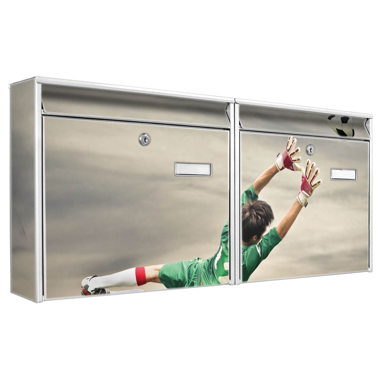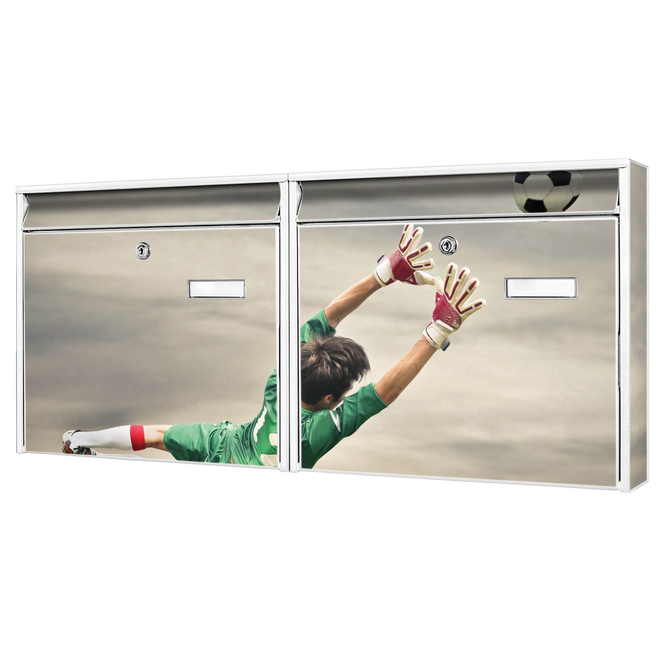 FUNKTION: Die Burg Wächter doppel Briefkastenanlage mit Motiv Abgewehrt bietet Ihnen ein großes Fassungsvermögen, sodass auch A4 Sendungen eingeworfen werden können. Das Namensschild lässt sich individuell beschriften. DESIGN: Die 2 Briefkästen mit Abgewehrt Motiv haben ein sehr ansprechendes und zeitloses Design. Heben Sie Sich von der tristen grauen Masse ab, ohne auf Funktionalität zu verzichten. Sie erhalten 2 Schlüssel sowie das Montagematerial. DETAILS: Der Doppelbriefkasten besteht aus verzinktem Stahl weiß. Er ist 72,5cm x 32,2cm x 10cm groß. Das Motiv besteht aus einer wetter- und UV-festen Folie, die Ihren Briefkasten zusätzlich vor Kratzern schützt. NUTZEN: Die stabile Bauart sowie die Wetterfestigkeit machen diese doppel Briefkästen zu einem zuverlässigen Begleiter im Alltag. Effektvoll in Reihe gehangen schmückt die Anlage jede Hauswand. BANJADO: Ihr Briefkasten wird in Sachsen in einer kleinen Manufaktur von Hand veredelt. Die Motivfolie ist lösungsmittelfrei und schutzlaminiert für einen langen Halt. Wir legen großen Wert auf die Verbindung von Funktionalität und Design. Sie erhalten Handarbeit aus Sachsen.