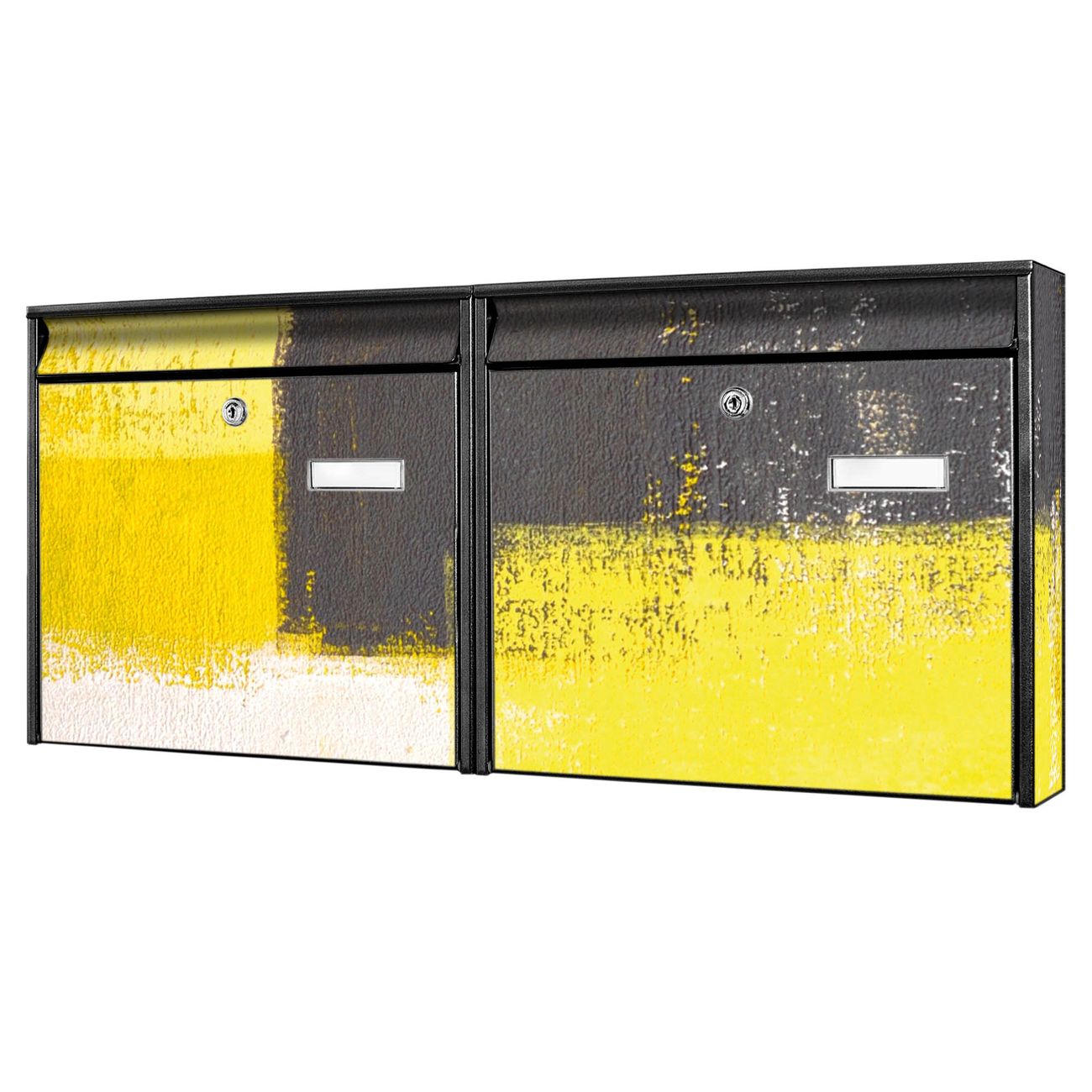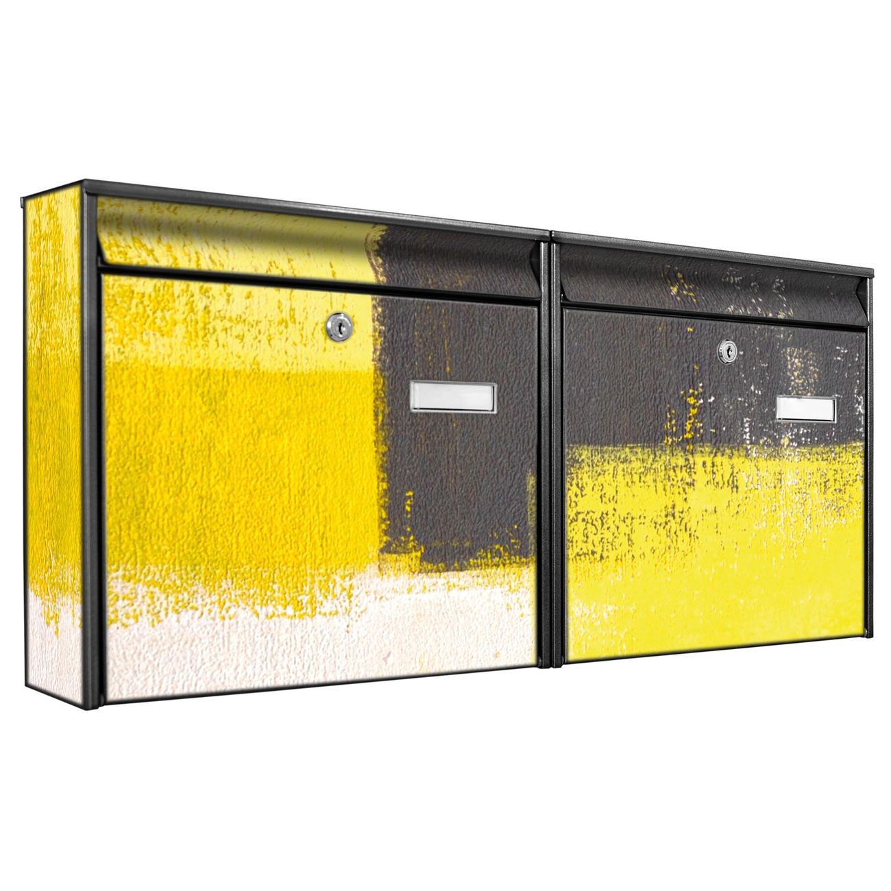 FUNKTION: Die Burg Wächter doppel Briefkastenanlage mit Motiv Abstrakt Gelb bietet Ihnen ein großes Fassungsvermögen, sodass auch A4 Sendungen eingeworfen werden können. Das Namensschild lässt sich individuell beschriften. DESIGN: Die 2 Briefkästen mit Abstrakt Gelb Motiv haben ein sehr ansprechendes und zeitloses Design. Heben Sie Sich von der tristen grauen Masse ab, ohne auf Funktionalität zu verzichten. Sie erhalten 2 Schlüssel sowie das Montagematerial. DETAILS: Der Doppelbriefkasten besteht aus verzinktem Stahl weiß. Er ist 72,5cm x 32,2cm x 10cm groß. Das Motiv besteht aus einer wetter- und UV-festen Folie, die Ihren Briefkasten zusätzlich vor Kratzern schützt. NUTZEN: Die stabile Bauart sowie die Wetterfestigkeit machen diese doppel Briefkästen zu einem zuverlässigen Begleiter im Alltag. Effektvoll in Reihe gehangen schmückt die Anlage jede Hauswand. BANJADO: Ihr Briefkasten wird in Sachsen in einer kleinen Manufaktur von Hand veredelt. Die Motivfolie ist lösungsmittelfrei und schutzlaminiert für einen langen Halt. Wir legen großen Wert auf die Verbindung von Funktionalität und Design. Sie erhalten Handarbeit aus Sachsen.