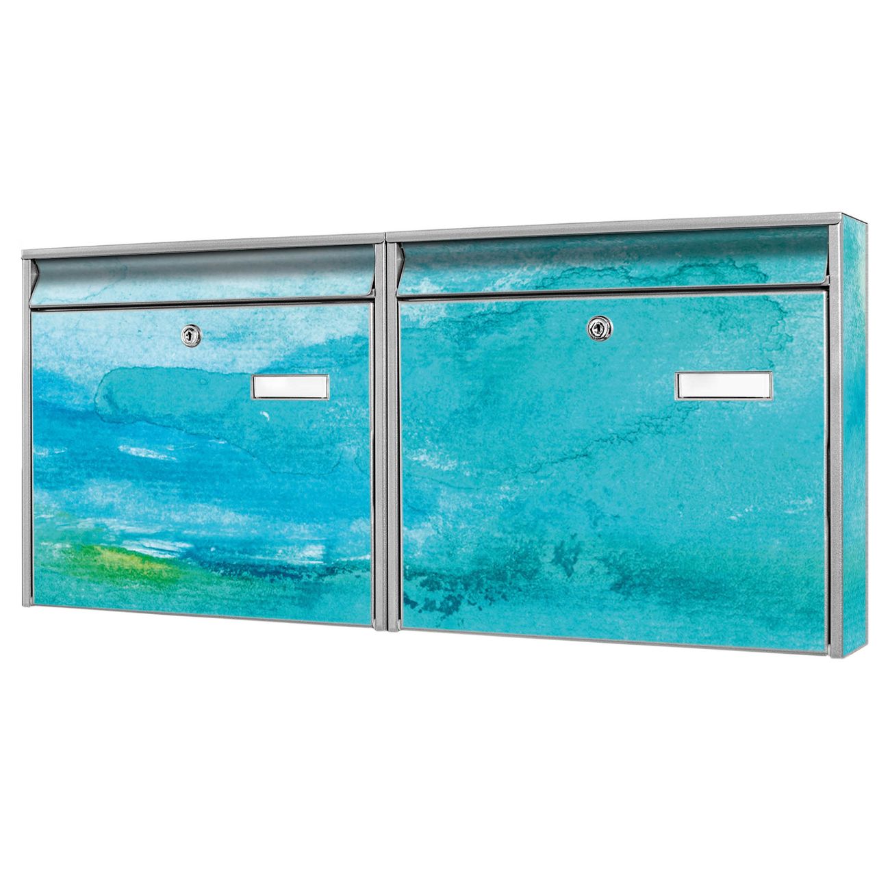 Doppelbriefkasten quer Aquarell Blau