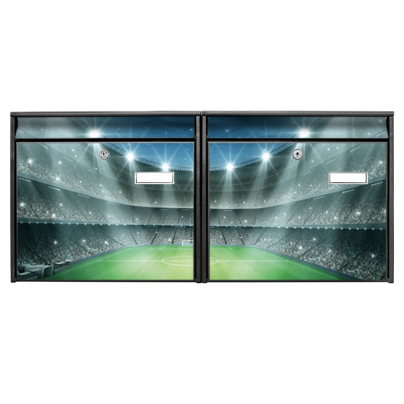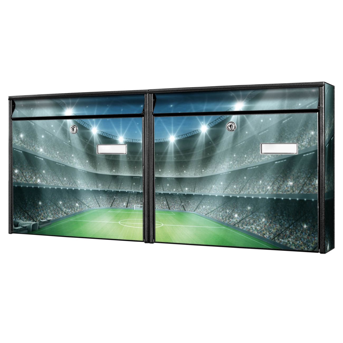 FUNKTION: Die Burg Wächter doppel Briefkastenanlage mit Motiv Arena bietet Ihnen ein großes Fassungsvermögen, sodass auch A4 Sendungen eingeworfen werden können. Das Namensschild lässt sich individuell beschriften. DESIGN: Die 2 Briefkästen mit Arena Motiv haben ein sehr ansprechendes und zeitloses Design. Heben Sie Sich von der tristen grauen Masse ab, ohne auf Funktionalität zu verzichten. Sie erhalten 2 Schlüssel sowie das Montagematerial. DETAILS: Der Doppelbriefkasten besteht aus verzinktem Stahl weiß. Er ist 72,5cm x 32,2cm x 10cm groß. Das Motiv besteht aus einer wetter- und UV-festen Folie, die Ihren Briefkasten zusätzlich vor Kratzern schützt. NUTZEN: Die stabile Bauart sowie die Wetterfestigkeit machen diese doppel Briefkästen zu einem zuverlässigen Begleiter im Alltag. Effektvoll in Reihe gehangen schmückt die Anlage jede Hauswand. BANJADO: Ihr Briefkasten wird in Sachsen in einer kleinen Manufaktur von Hand veredelt. Die Motivfolie ist lösungsmittelfrei und schutzlaminiert für einen langen Halt. Wir legen großen Wert auf die Verbindung von Funktionalität und Design. Sie erhalten Handarbeit aus Sachsen.