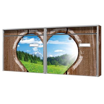 FUNKTION: Die Burg Wächter doppel Briefkastenanlage mit Motiv Ausblick mit Herz bietet Ihnen ein großes Fassungsvermögen, sodass auch A4 Sendungen eingeworfen werden können. Das Namensschild lässt sich individuell beschriften. DESIGN: Die 2 Briefkästen mit Ausblick mit Herz Motiv haben ein sehr ansprechendes und zeitloses Design. Heben Sie Sich von der tristen grauen Masse ab, ohne auf Funktionalität zu verzichten. Sie erhalten 2 Schlüssel sowie das Montagematerial. DETAILS: Der Doppelbriefkasten besteht aus verzinktem Stahl weiß. Er ist 72,5cm x 32,2cm x 10cm groß. Das Motiv besteht aus einer wetter- und UV-festen Folie, die Ihren Briefkasten zusätzlich vor Kratzern schützt. NUTZEN: Die stabile Bauart sowie die Wetterfestigkeit machen diese doppel Briefkästen zu einem zuverlässigen Begleiter im Alltag. Effektvoll in Reihe gehangen schmückt die Anlage jede Hauswand. BANJADO: Ihr Briefkasten wird in Sachsen in einer kleinen Manufaktur von Hand veredelt. Die Motivfolie ist lösungsmittelfrei und schutzlaminiert für einen langen Halt. Wir legen großen Wert auf die Verbindung von Funktionalität und Design. Sie erhalten Handarbeit aus Sachsen.