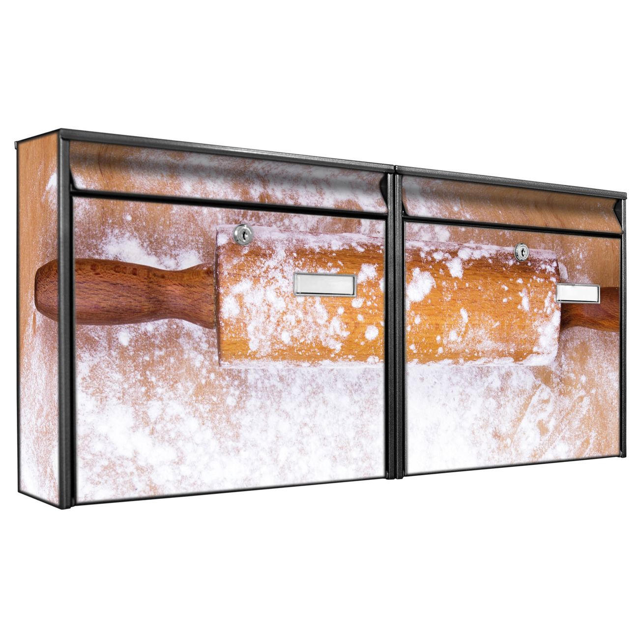FUNKTION: Die Burg Wächter doppel Briefkastenanlage mit Motiv Backen bietet Ihnen ein großes Fassungsvermögen, sodass auch A4 Sendungen eingeworfen werden können. Das Namensschild lässt sich individuell beschriften. DESIGN: Die 2 Briefkästen mit Backen Motiv haben ein sehr ansprechendes und zeitloses Design. Heben Sie Sich von der tristen grauen Masse ab, ohne auf Funktionalität zu verzichten. Sie erhalten 2 Schlüssel sowie das Montagematerial. DETAILS: Der Doppelbriefkasten besteht aus verzinktem Stahl weiß. Er ist 72,5cm x 32,2cm x 10cm groß. Das Motiv besteht aus einer wetter- und UV-festen Folie, die Ihren Briefkasten zusätzlich vor Kratzern schützt. NUTZEN: Die stabile Bauart sowie die Wetterfestigkeit machen diese doppel Briefkästen zu einem zuverlässigen Begleiter im Alltag. Effektvoll in Reihe gehangen schmückt die Anlage jede Hauswand. BANJADO: Ihr Briefkasten wird in Sachsen in einer kleinen Manufaktur von Hand veredelt. Die Motivfolie ist lösungsmittelfrei und schutzlaminiert für einen langen Halt. Wir legen großen Wert auf die Verbindung von Funktionalität und Design. Sie erhalten Handarbeit aus Sachsen.