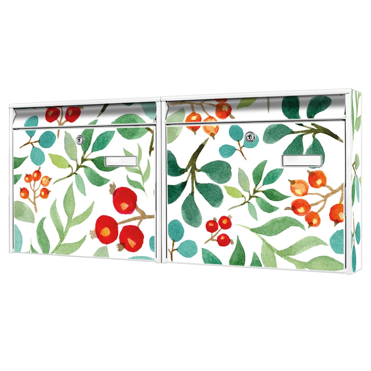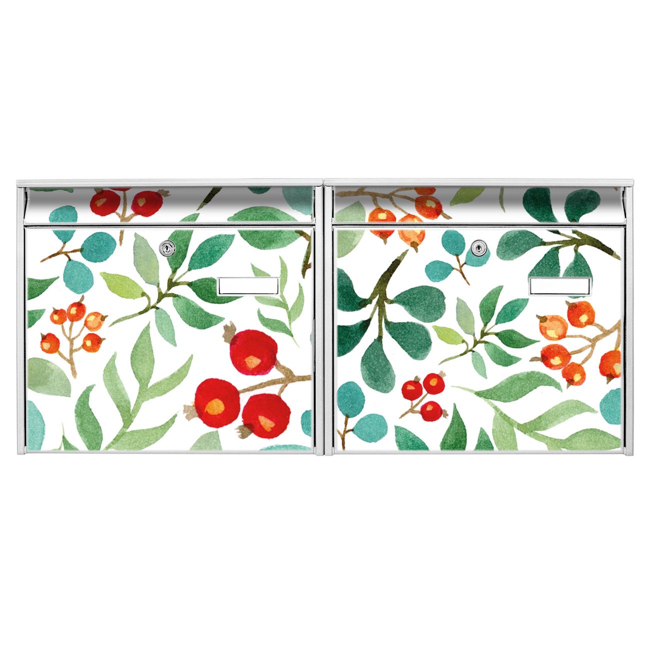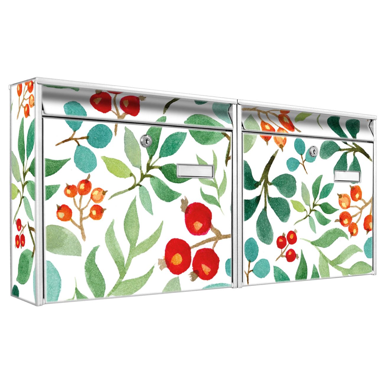 Doppelbriefkasten quer Beeren und Blätter