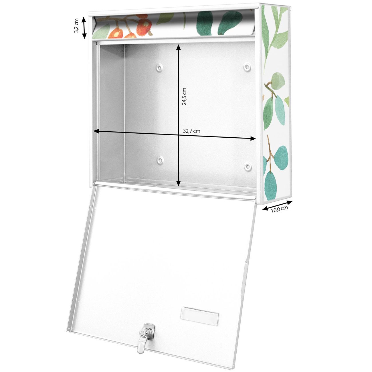 FUNKTION: Die Burg Wächter doppel Briefkastenanlage mit Motiv Beeren und Blätter bietet Ihnen ein großes Fassungsvermögen, sodass auch A4 Sendungen eingeworfen werden können. Das Namensschild lässt sich individuell beschriften. DESIGN: Die 2 Briefkästen mit Beeren und Blätter Motiv haben ein sehr ansprechendes und zeitloses Design. Heben Sie Sich von der tristen grauen Masse ab, ohne auf Funktionalität zu verzichten. Sie erhalten 2 Schlüssel sowie das Montagematerial. DETAILS: Der Doppelbriefkasten besteht aus verzinktem Stahl weiß. Er ist 72,5cm x 32,2cm x 10cm groß. Das Motiv besteht aus einer wetter- und UV-festen Folie, die Ihren Briefkasten zusätzlich vor Kratzern schützt. NUTZEN: Die stabile Bauart sowie die Wetterfestigkeit machen diese doppel Briefkästen zu einem zuverlässigen Begleiter im Alltag. Effektvoll in Reihe gehangen schmückt die Anlage jede Hauswand. BANJADO: Ihr Briefkasten wird in Sachsen in einer kleinen Manufaktur von Hand veredelt. Die Motivfolie ist lösungsmittelfrei und schutzlaminiert für einen langen Halt. Wir legen großen Wert auf die Verbindung von Funktionalität und Design. Sie erhalten Handarbeit aus Sachsen.