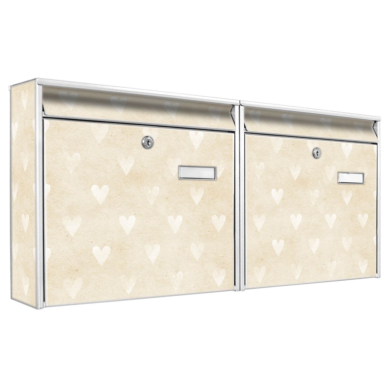 Doppelbriefkasten quer Beige Herzen