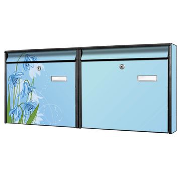 FUNKTION: Die Burg Wächter doppel Briefkastenanlage mit Motiv Bergblaulilie bietet Ihnen ein großes Fassungsvermögen, sodass auch A4 Sendungen eingeworfen werden können. Das Namensschild lässt sich individuell beschriften. DESIGN: Die 2 Briefkästen mit Bergblaulilie Motiv haben ein sehr ansprechendes und zeitloses Design. Heben Sie Sich von der tristen grauen Masse ab, ohne auf Funktionalität zu verzichten. Sie erhalten 2 Schlüssel sowie das Montagematerial. DETAILS: Der Doppelbriefkasten besteht aus verzinktem Stahl weiß. Er ist 72,5cm x 32,2cm x 10cm groß. Das Motiv besteht aus einer wetter- und UV-festen Folie, die Ihren Briefkasten zusätzlich vor Kratzern schützt. NUTZEN: Die stabile Bauart sowie die Wetterfestigkeit machen diese doppel Briefkästen zu einem zuverlässigen Begleiter im Alltag. Effektvoll in Reihe gehangen schmückt die Anlage jede Hauswand. BANJADO: Ihr Briefkasten wird in Sachsen in einer kleinen Manufaktur von Hand veredelt. Die Motivfolie ist lösungsmittelfrei und schutzlaminiert für einen langen Halt. Wir legen großen Wert auf die Verbindung von Funktionalität und Design. Sie erhalten Handarbeit aus Sachsen.