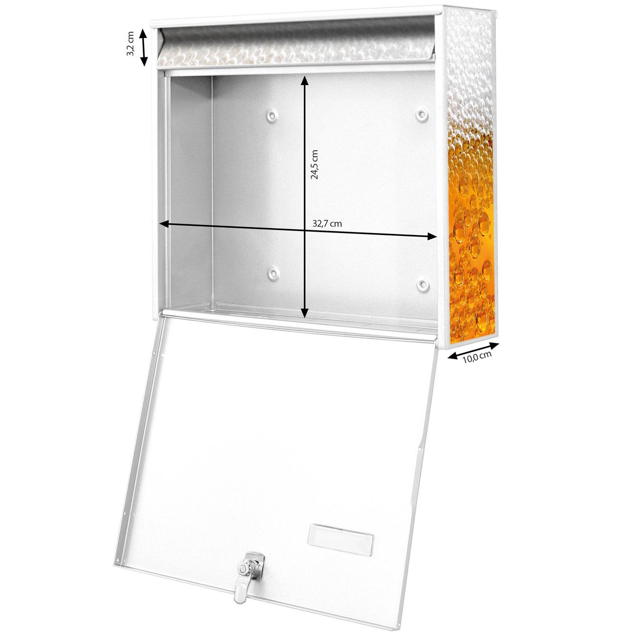 FUNKTION: Die Burg Wächter doppel Briefkastenanlage mit Motiv Bier bietet Ihnen ein großes Fassungsvermögen, sodass auch A4 Sendungen eingeworfen werden können. Das Namensschild lässt sich individuell beschriften. DESIGN: Die 2 Briefkästen mit Bier Motiv haben ein sehr ansprechendes und zeitloses Design. Heben Sie Sich von der tristen grauen Masse ab, ohne auf Funktionalität zu verzichten. Sie erhalten 2 Schlüssel sowie das Montagematerial. DETAILS: Der Doppelbriefkasten besteht aus verzinktem Stahl weiß. Er ist 72,5cm x 32,2cm x 10cm groß. Das Motiv besteht aus einer wetter- und UV-festen Folie, die Ihren Briefkasten zusätzlich vor Kratzern schützt. NUTZEN: Die stabile Bauart sowie die Wetterfestigkeit machen diese doppel Briefkästen zu einem zuverlässigen Begleiter im Alltag. Effektvoll in Reihe gehangen schmückt die Anlage jede Hauswand. BANJADO: Ihr Briefkasten wird in Sachsen in einer kleinen Manufaktur von Hand veredelt. Die Motivfolie ist lösungsmittelfrei und schutzlaminiert für einen langen Halt. Wir legen großen Wert auf die Verbindung von Funktionalität und Design. Sie erhalten Handarbeit aus Sachsen.