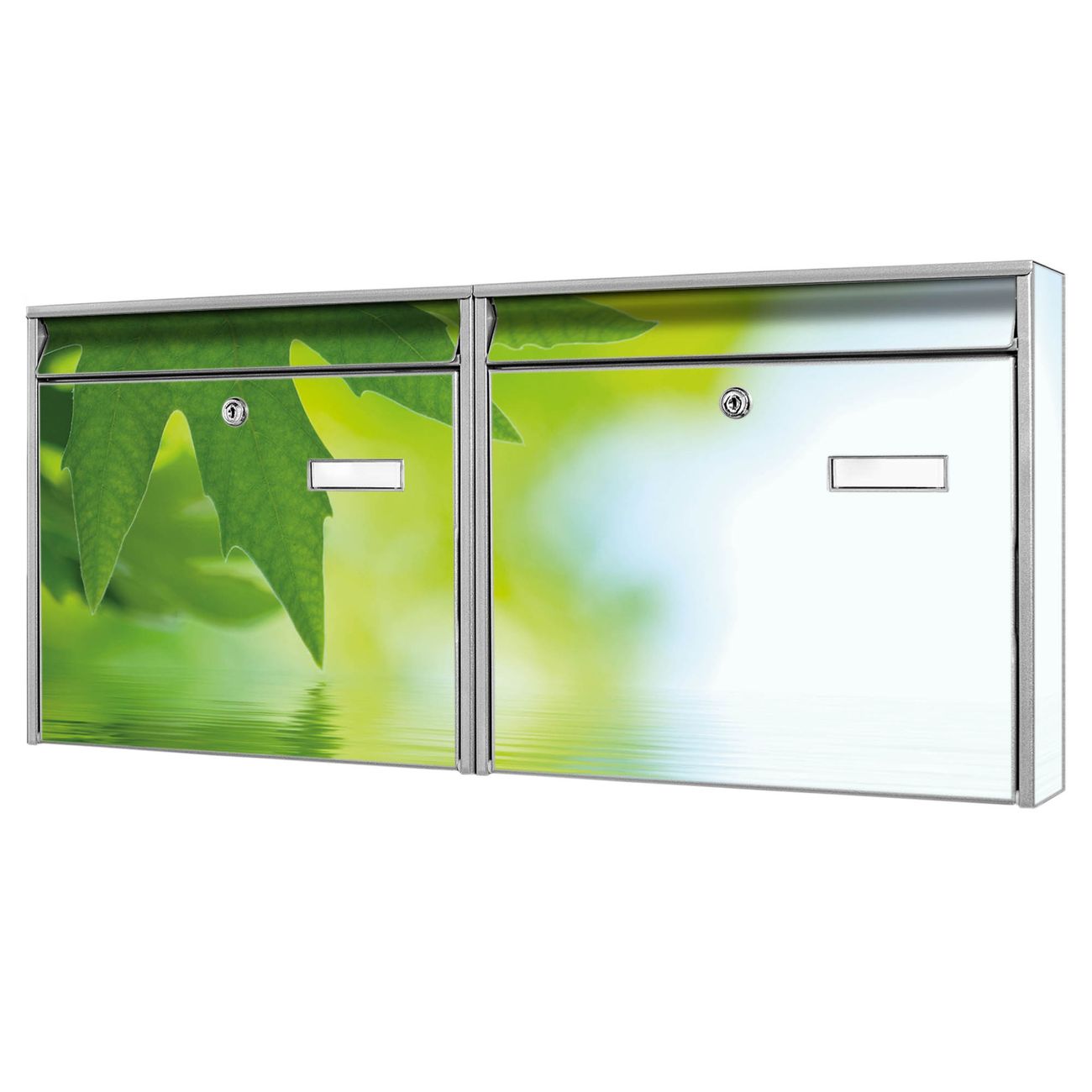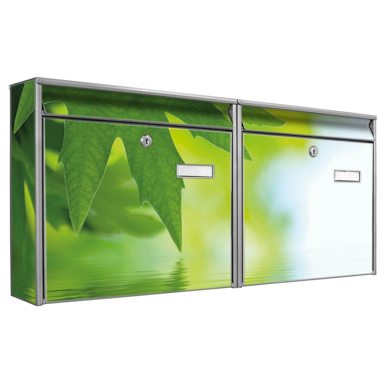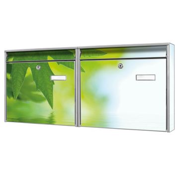 FUNKTION: Die Burg Wächter doppel Briefkastenanlage mit Motiv Blättertraum bietet Ihnen ein großes Fassungsvermögen, sodass auch A4 Sendungen eingeworfen werden können. Das Namensschild lässt sich individuell beschriften. DESIGN: Die 2 Briefkästen mit Blättertraum Motiv haben ein sehr ansprechendes und zeitloses Design. Heben Sie Sich von der tristen grauen Masse ab, ohne auf Funktionalität zu verzichten. Sie erhalten 2 Schlüssel sowie das Montagematerial. DETAILS: Der Doppelbriefkasten besteht aus verzinktem Stahl weiß. Er ist 72,5cm x 32,2cm x 10cm groß. Das Motiv besteht aus einer wetter- und UV-festen Folie, die Ihren Briefkasten zusätzlich vor Kratzern schützt. NUTZEN: Die stabile Bauart sowie die Wetterfestigkeit machen diese doppel Briefkästen zu einem zuverlässigen Begleiter im Alltag. Effektvoll in Reihe gehangen schmückt die Anlage jede Hauswand. BANJADO: Ihr Briefkasten wird in Sachsen in einer kleinen Manufaktur von Hand veredelt. Die Motivfolie ist lösungsmittelfrei und schutzlaminiert für einen langen Halt. Wir legen großen Wert auf die Verbindung von Funktionalität und Design. Sie erhalten Handarbeit aus Sachsen.