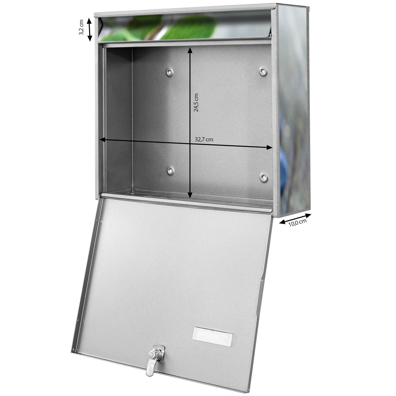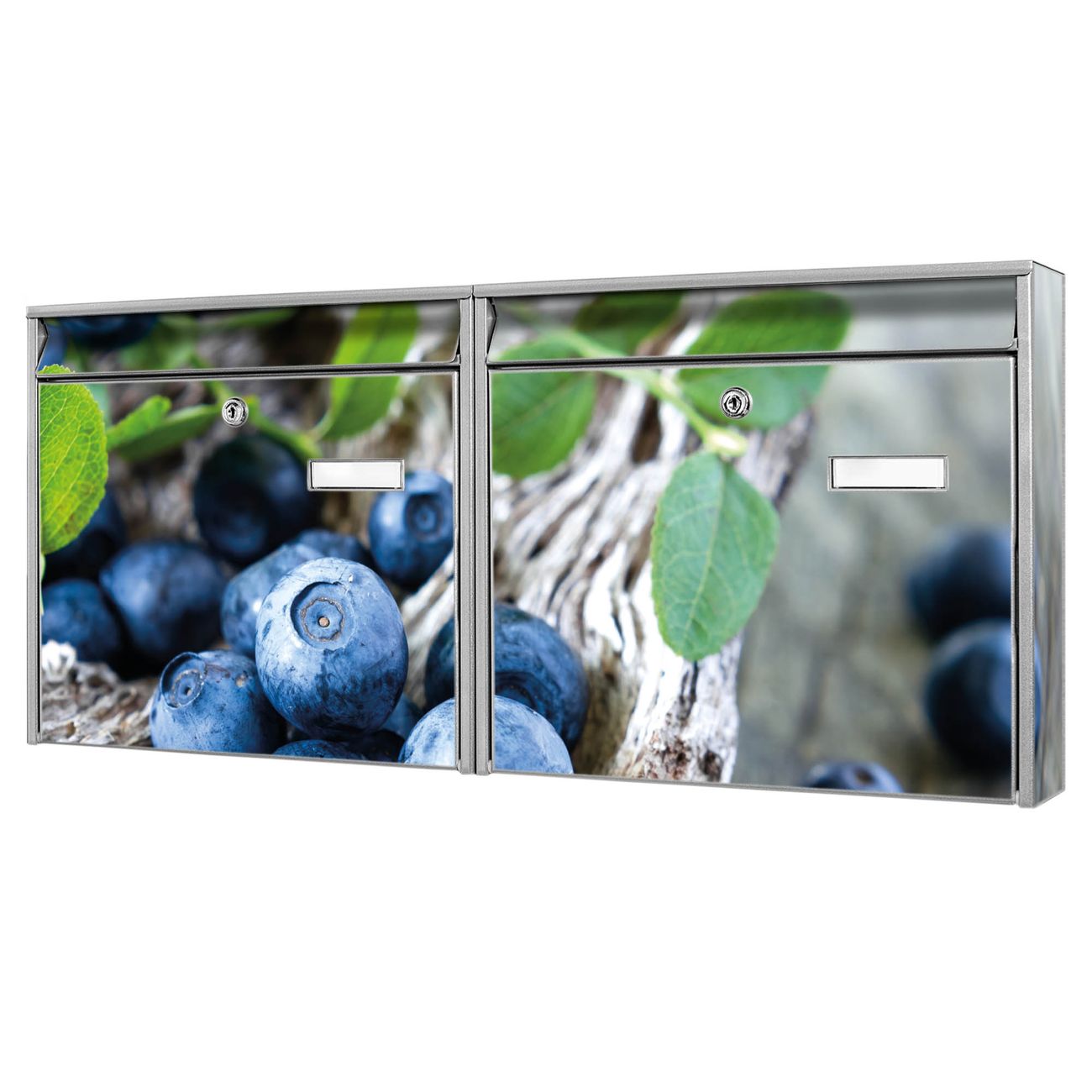 FUNKTION: Die Burg Wächter doppel Briefkastenanlage mit Motiv Blaubeeren bietet Ihnen ein großes Fassungsvermögen, sodass auch A4 Sendungen eingeworfen werden können. Das Namensschild lässt sich individuell beschriften. DESIGN: Die 2 Briefkästen mit Blaubeeren Motiv haben ein sehr ansprechendes und zeitloses Design. Heben Sie Sich von der tristen grauen Masse ab, ohne auf Funktionalität zu verzichten. Sie erhalten 2 Schlüssel sowie das Montagematerial. DETAILS: Der Doppelbriefkasten besteht aus verzinktem Stahl weiß. Er ist 72,5cm x 32,2cm x 10cm groß. Das Motiv besteht aus einer wetter- und UV-festen Folie, die Ihren Briefkasten zusätzlich vor Kratzern schützt. NUTZEN: Die stabile Bauart sowie die Wetterfestigkeit machen diese doppel Briefkästen zu einem zuverlässigen Begleiter im Alltag. Effektvoll in Reihe gehangen schmückt die Anlage jede Hauswand. BANJADO: Ihr Briefkasten wird in Sachsen in einer kleinen Manufaktur von Hand veredelt. Die Motivfolie ist lösungsmittelfrei und schutzlaminiert für einen langen Halt. Wir legen großen Wert auf die Verbindung von Funktionalität und Design. Sie erhalten Handarbeit aus Sachsen.