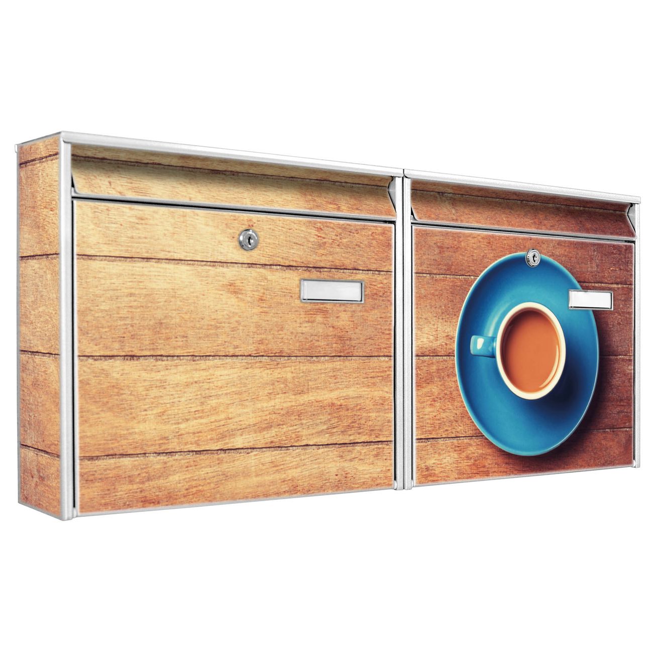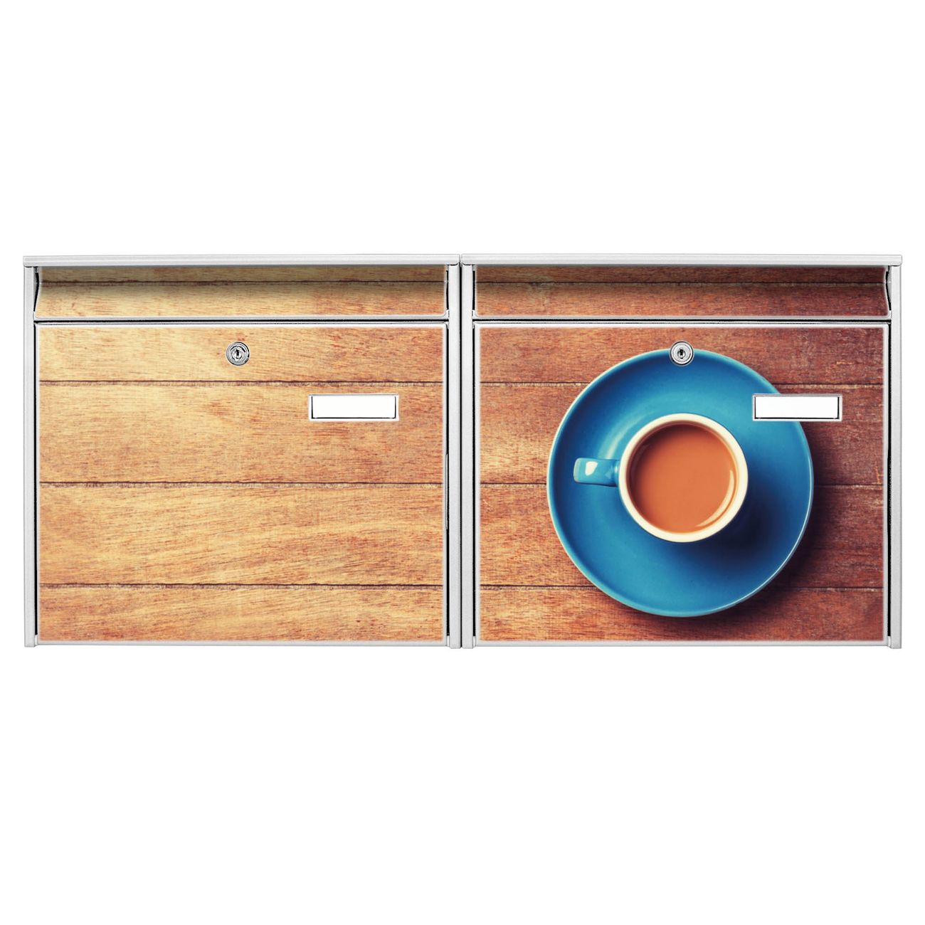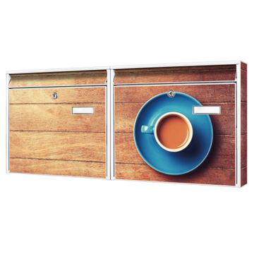 FUNKTION: Die Burg Wächter doppel Briefkastenanlage mit Motiv Blaue Tasse bietet Ihnen ein großes Fassungsvermögen, sodass auch A4 Sendungen eingeworfen werden können. Das Namensschild lässt sich individuell beschriften. DESIGN: Die 2 Briefkästen mit Blaue Tasse Motiv haben ein sehr ansprechendes und zeitloses Design. Heben Sie Sich von der tristen grauen Masse ab, ohne auf Funktionalität zu verzichten. Sie erhalten 2 Schlüssel sowie das Montagematerial. DETAILS: Der Doppelbriefkasten besteht aus verzinktem Stahl weiß. Er ist 72,5cm x 32,2cm x 10cm groß. Das Motiv besteht aus einer wetter- und UV-festen Folie, die Ihren Briefkasten zusätzlich vor Kratzern schützt. NUTZEN: Die stabile Bauart sowie die Wetterfestigkeit machen diese doppel Briefkästen zu einem zuverlässigen Begleiter im Alltag. Effektvoll in Reihe gehangen schmückt die Anlage jede Hauswand. BANJADO: Ihr Briefkasten wird in Sachsen in einer kleinen Manufaktur von Hand veredelt. Die Motivfolie ist lösungsmittelfrei und schutzlaminiert für einen langen Halt. Wir legen großen Wert auf die Verbindung von Funktionalität und Design. Sie erhalten Handarbeit aus Sachsen.