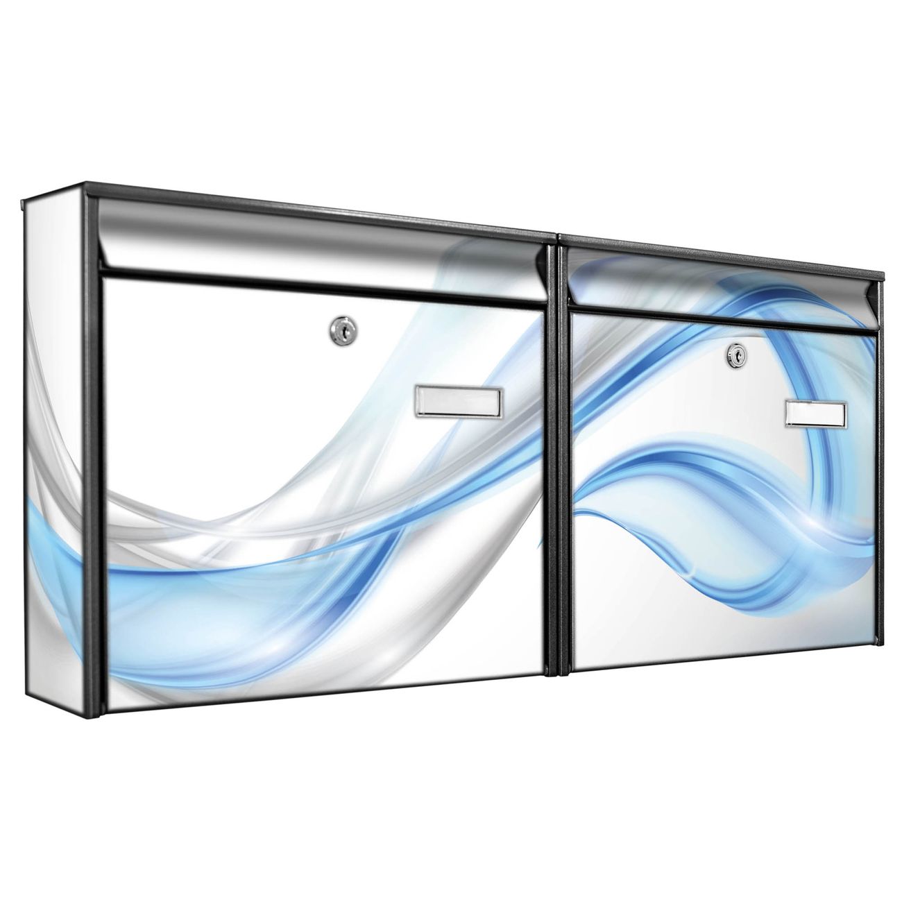 FUNKTION: Die Burg Wächter doppel Briefkastenanlage mit Motiv Blauer Schleier bietet Ihnen ein großes Fassungsvermögen, sodass auch A4 Sendungen eingeworfen werden können. Das Namensschild lässt sich individuell beschriften. DESIGN: Die 2 Briefkästen mit Blauer Schleier Motiv haben ein sehr ansprechendes und zeitloses Design. Heben Sie Sich von der tristen grauen Masse ab, ohne auf Funktionalität zu verzichten. Sie erhalten 2 Schlüssel sowie das Montagematerial. DETAILS: Der Doppelbriefkasten besteht aus verzinktem Stahl weiß. Er ist 72,5cm x 32,2cm x 10cm groß. Das Motiv besteht aus einer wetter- und UV-festen Folie, die Ihren Briefkasten zusätzlich vor Kratzern schützt. NUTZEN: Die stabile Bauart sowie die Wetterfestigkeit machen diese doppel Briefkästen zu einem zuverlässigen Begleiter im Alltag. Effektvoll in Reihe gehangen schmückt die Anlage jede Hauswand. BANJADO: Ihr Briefkasten wird in Sachsen in einer kleinen Manufaktur von Hand veredelt. Die Motivfolie ist lösungsmittelfrei und schutzlaminiert für einen langen Halt. Wir legen großen Wert auf die Verbindung von Funktionalität und Design. Sie erhalten Handarbeit aus Sachsen.