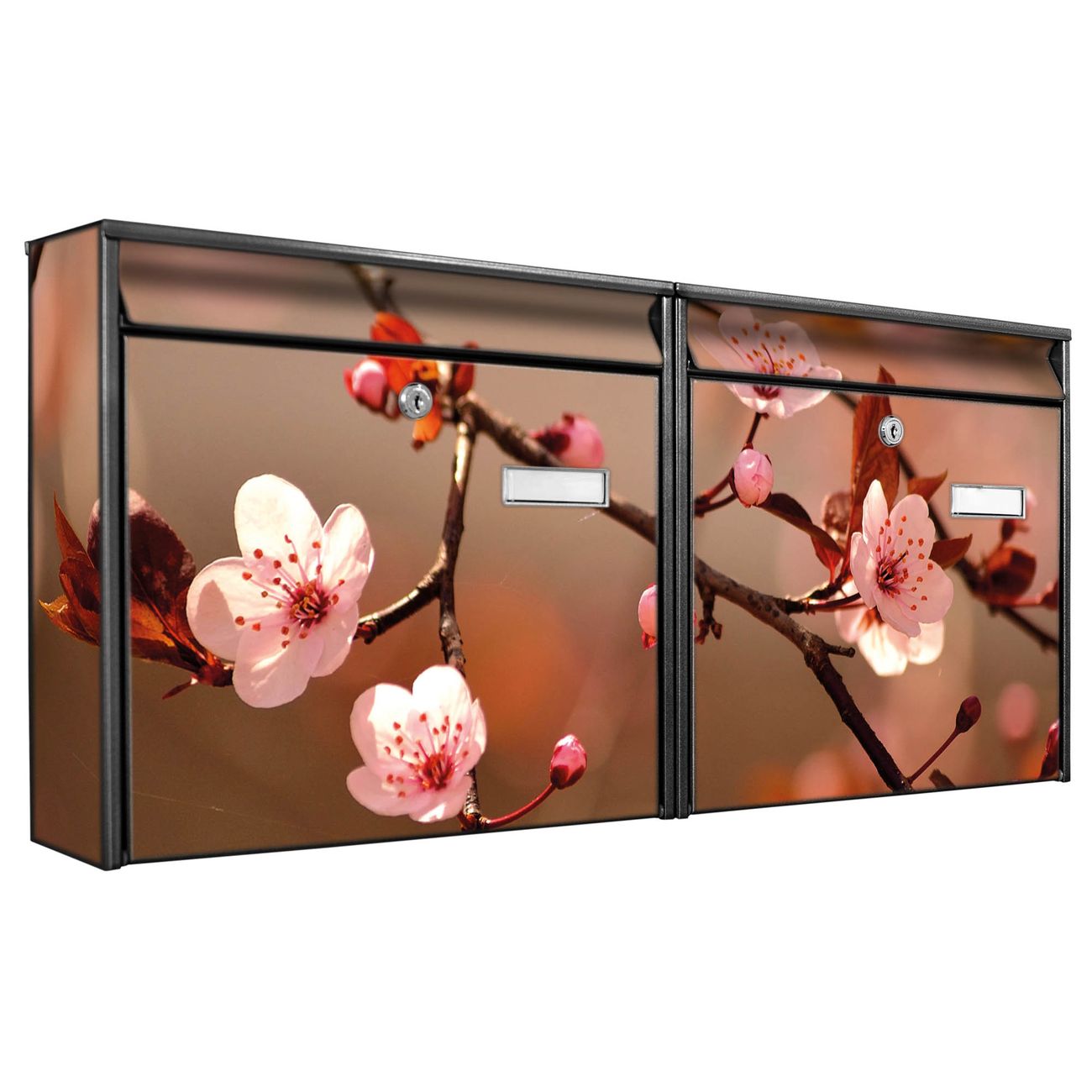 FUNKTION: Die Burg Wächter doppel Briefkastenanlage mit Motiv Blühender Kirschzweig bietet Ihnen ein großes Fassungsvermögen, sodass auch A4 Sendungen eingeworfen werden können. Das Namensschild lässt sich individuell beschriften. DESIGN: Die 2 Briefkästen mit Blühender Kirschzweig Motiv haben ein sehr ansprechendes und zeitloses Design. Heben Sie Sich von der tristen grauen Masse ab, ohne auf Funktionalität zu verzichten. Sie erhalten 2 Schlüssel sowie das Montagematerial. DETAILS: Der Doppelbriefkasten besteht aus verzinktem Stahl weiß. Er ist 72,5cm x 32,2cm x 10cm groß. Das Motiv besteht aus einer wetter- und UV-festen Folie, die Ihren Briefkasten zusätzlich vor Kratzern schützt. NUTZEN: Die stabile Bauart sowie die Wetterfestigkeit machen diese doppel Briefkästen zu einem zuverlässigen Begleiter im Alltag. Effektvoll in Reihe gehangen schmückt die Anlage jede Hauswand. BANJADO: Ihr Briefkasten wird in Sachsen in einer kleinen Manufaktur von Hand veredelt. Die Motivfolie ist lösungsmittelfrei und schutzlaminiert für einen langen Halt. Wir legen großen Wert auf die Verbindung von Funktionalität und Design. Sie erhalten Handarbeit aus Sachsen.