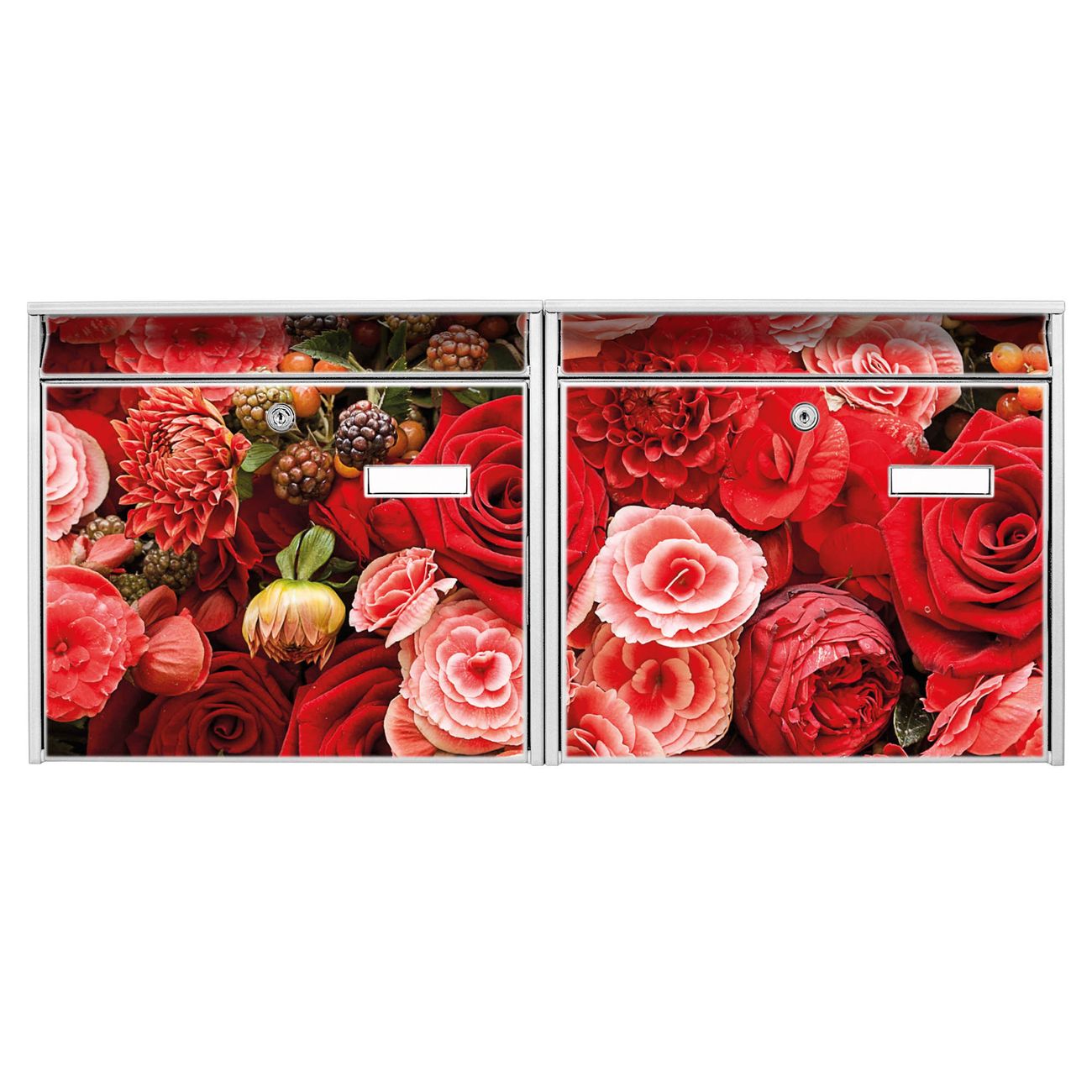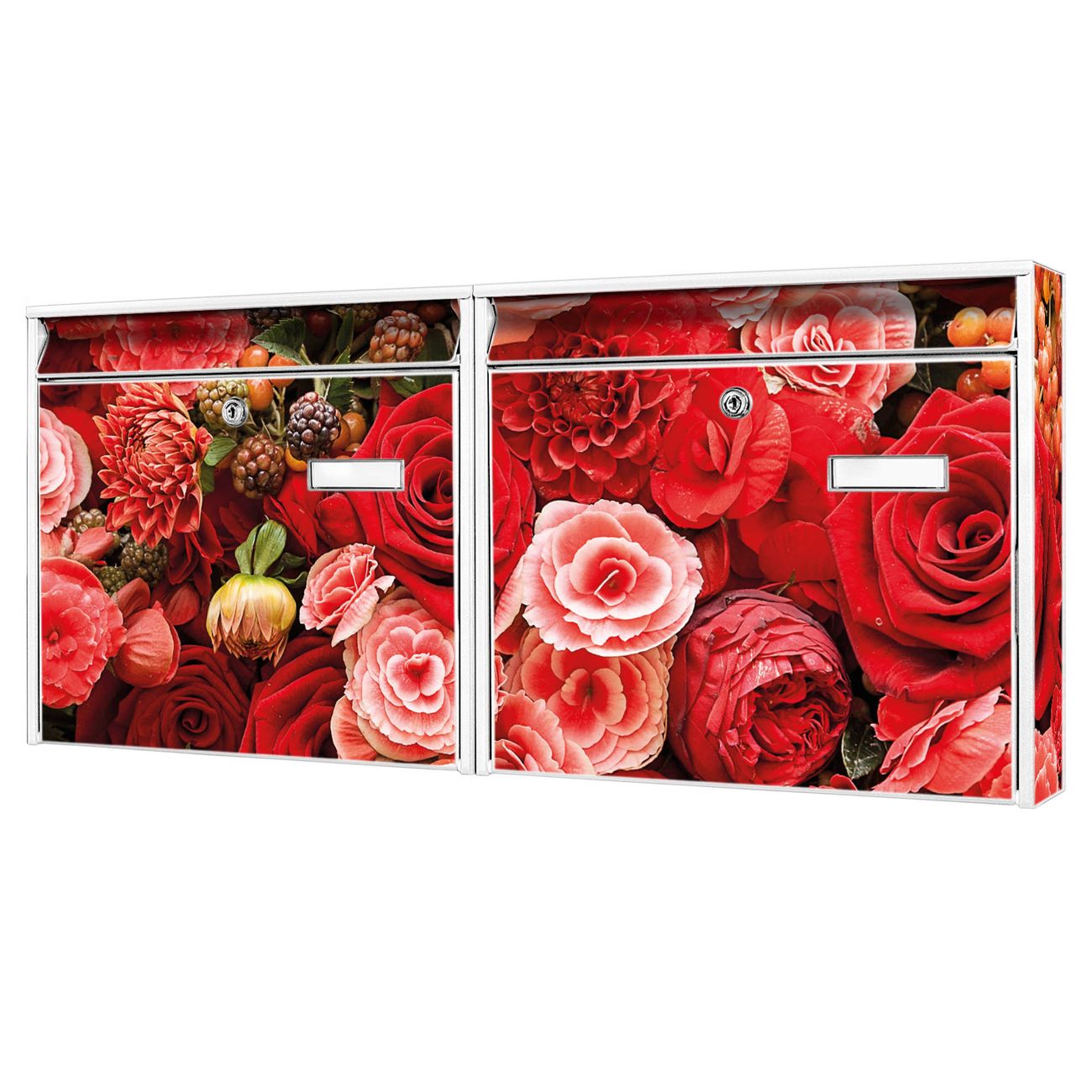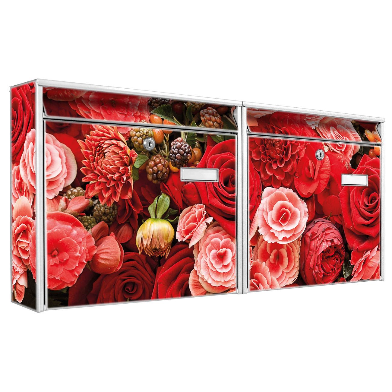 Doppelbriefkasten quer Bouquet in Rot