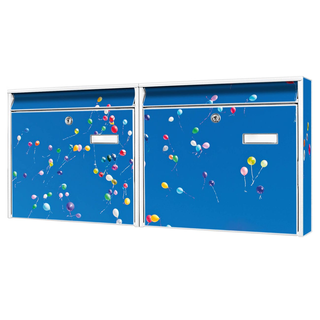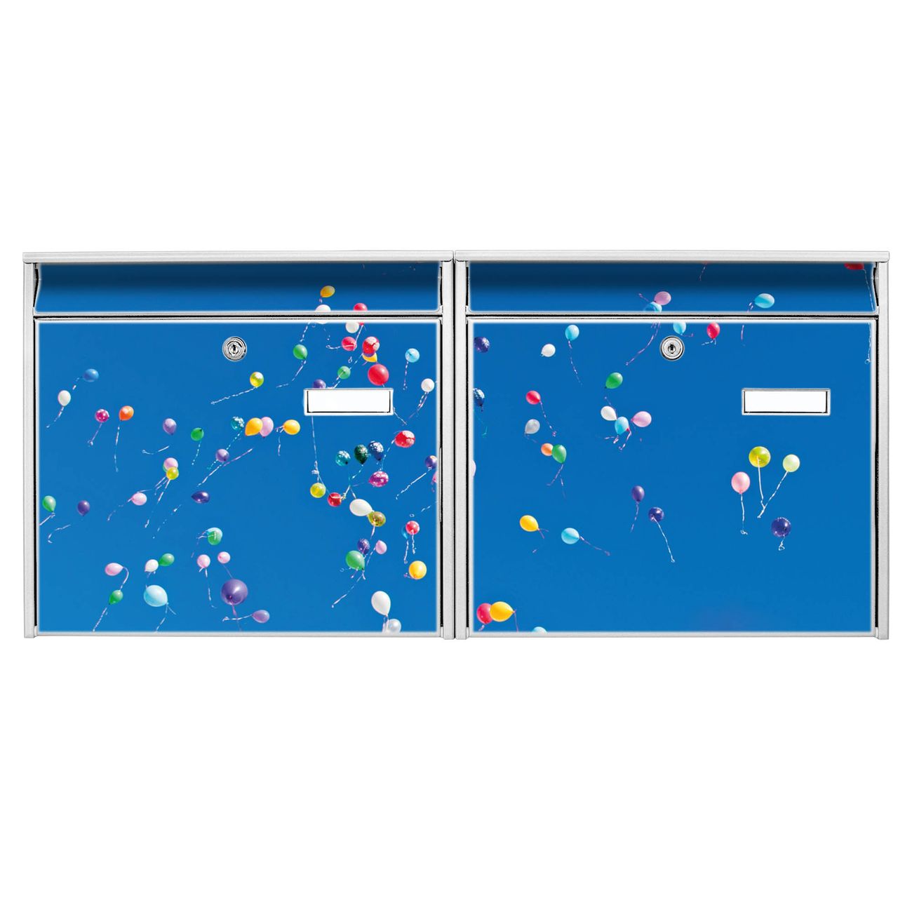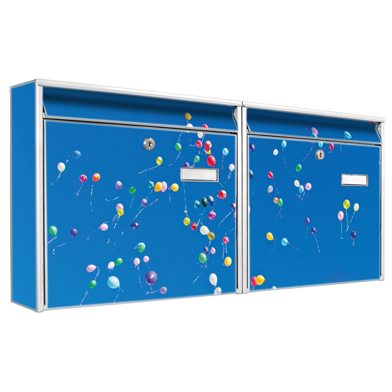 FUNKTION: Die Burg Wächter doppel Briefkastenanlage mit Motiv Bunte Luftballons bietet Ihnen ein großes Fassungsvermögen, sodass auch A4 Sendungen eingeworfen werden können. Das Namensschild lässt sich individuell beschriften. DESIGN: Die 2 Briefkästen mit Bunte Luftballons Motiv haben ein sehr ansprechendes und zeitloses Design. Heben Sie Sich von der tristen grauen Masse ab, ohne auf Funktionalität zu verzichten. Sie erhalten 2 Schlüssel sowie das Montagematerial. DETAILS: Der Doppelbriefkasten besteht aus verzinktem Stahl weiß. Er ist 72,5cm x 32,2cm x 10cm groß. Das Motiv besteht aus einer wetter- und UV-festen Folie, die Ihren Briefkasten zusätzlich vor Kratzern schützt. NUTZEN: Die stabile Bauart sowie die Wetterfestigkeit machen diese doppel Briefkästen zu einem zuverlässigen Begleiter im Alltag. Effektvoll in Reihe gehangen schmückt die Anlage jede Hauswand. BANJADO: Ihr Briefkasten wird in Sachsen in einer kleinen Manufaktur von Hand veredelt. Die Motivfolie ist lösungsmittelfrei und schutzlaminiert für einen langen Halt. Wir legen großen Wert auf die Verbindung von Funktionalität und Design. Sie erhalten Handarbeit aus Sachsen.