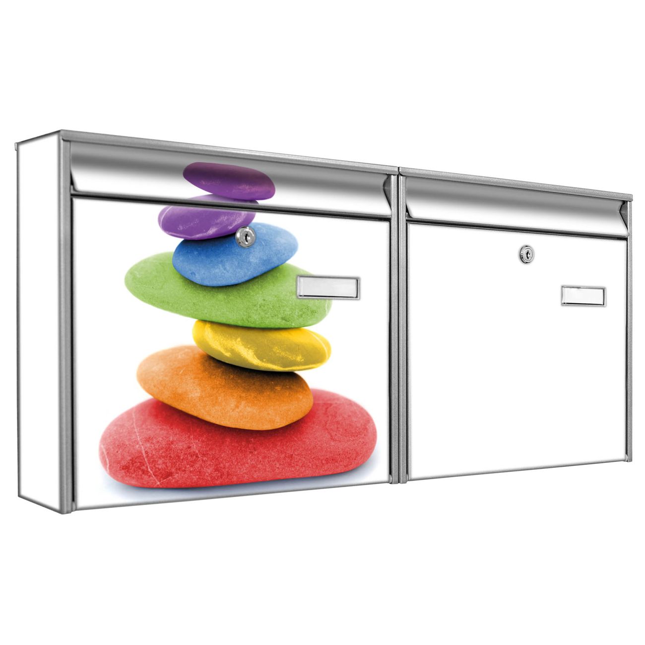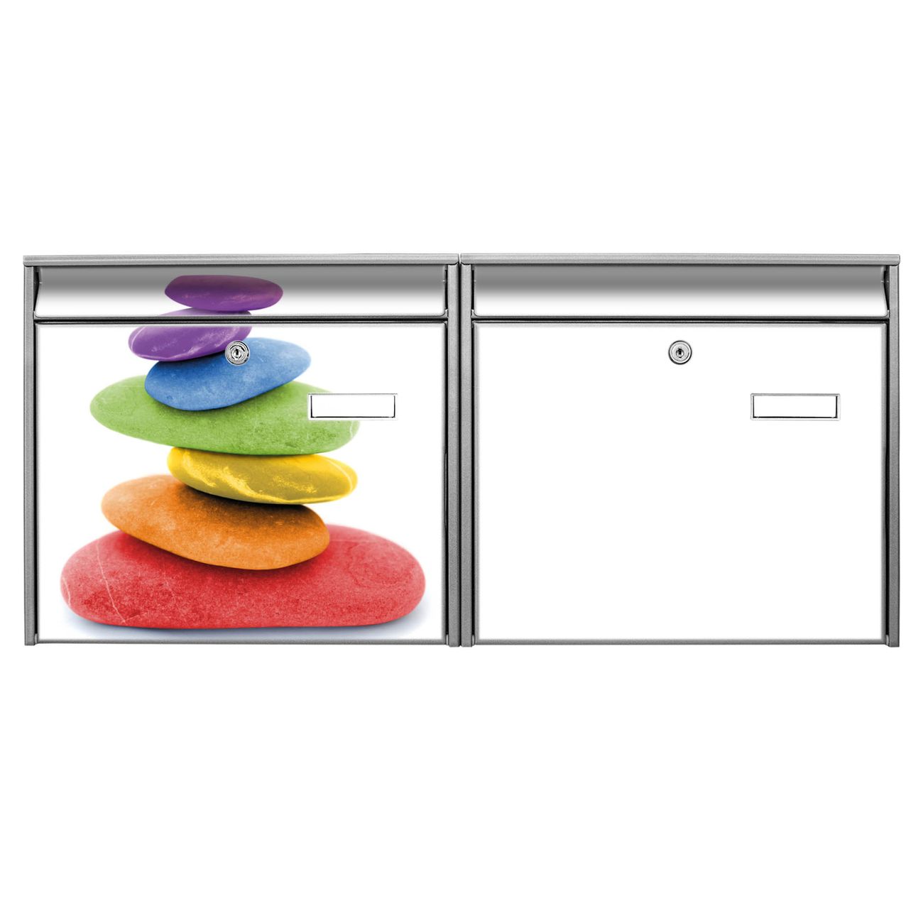 FUNKTION: Die Burg Wächter doppel Briefkastenanlage mit Motiv Coloured Stone bietet Ihnen ein großes Fassungsvermögen, sodass auch A4 Sendungen eingeworfen werden können. Das Namensschild lässt sich individuell beschriften. DESIGN: Die 2 Briefkästen mit Coloured Stone Motiv haben ein sehr ansprechendes und zeitloses Design. Heben Sie Sich von der tristen grauen Masse ab, ohne auf Funktionalität zu verzichten. Sie erhalten 2 Schlüssel sowie das Montagematerial. DETAILS: Der Doppelbriefkasten besteht aus verzinktem Stahl weiß. Er ist 72,5cm x 32,2cm x 10cm groß. Das Motiv besteht aus einer wetter- und UV-festen Folie, die Ihren Briefkasten zusätzlich vor Kratzern schützt. NUTZEN: Die stabile Bauart sowie die Wetterfestigkeit machen diese doppel Briefkästen zu einem zuverlässigen Begleiter im Alltag. Effektvoll in Reihe gehangen schmückt die Anlage jede Hauswand. BANJADO: Ihr Briefkasten wird in Sachsen in einer kleinen Manufaktur von Hand veredelt. Die Motivfolie ist lösungsmittelfrei und schutzlaminiert für einen langen Halt. Wir legen großen Wert auf die Verbindung von Funktionalität und Design. Sie erhalten Handarbeit aus Sachsen.