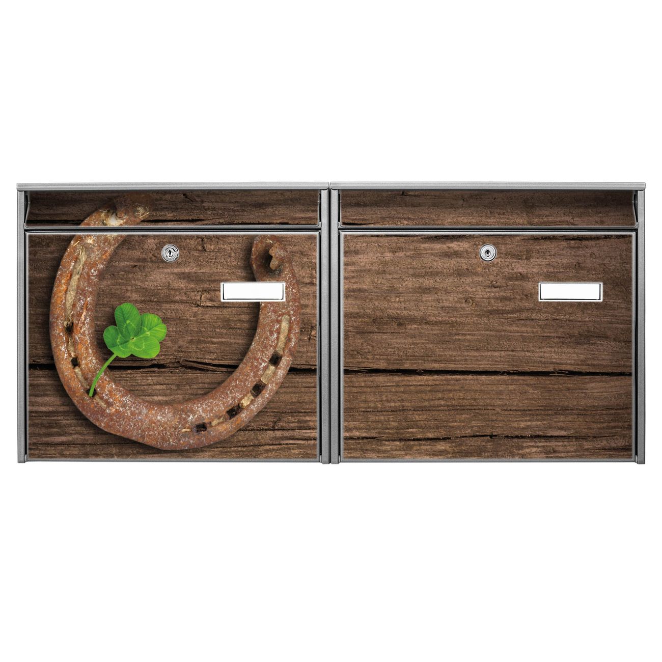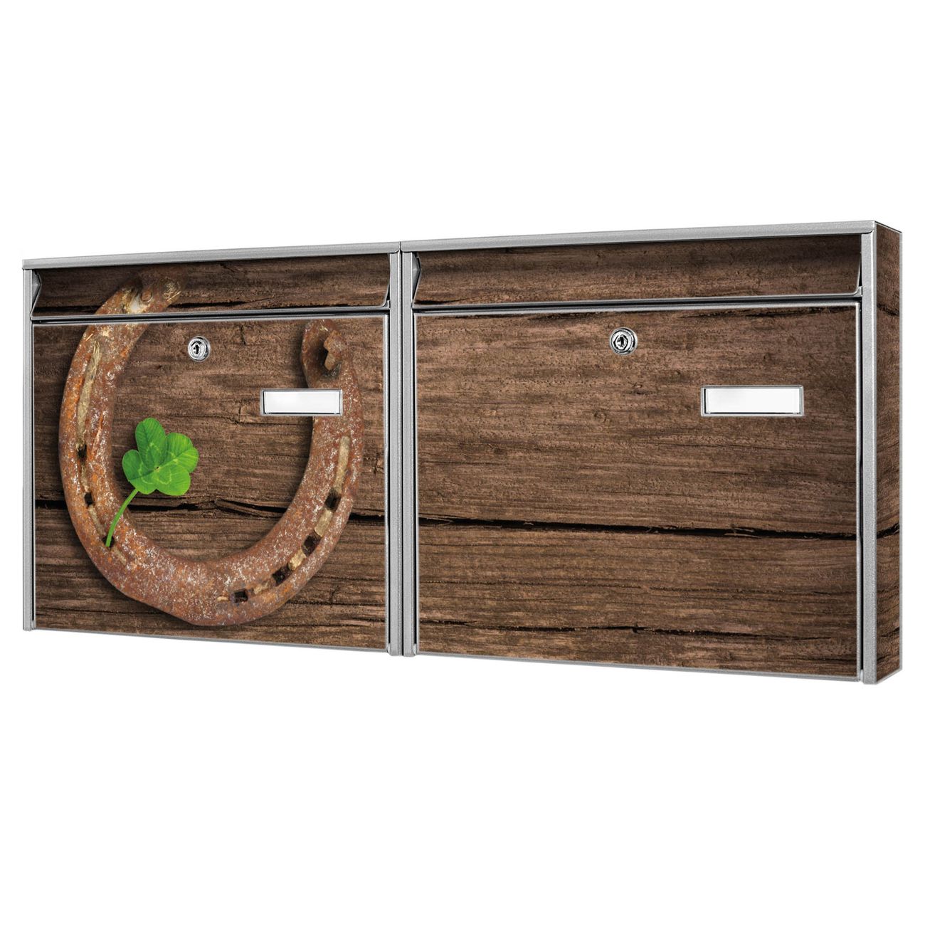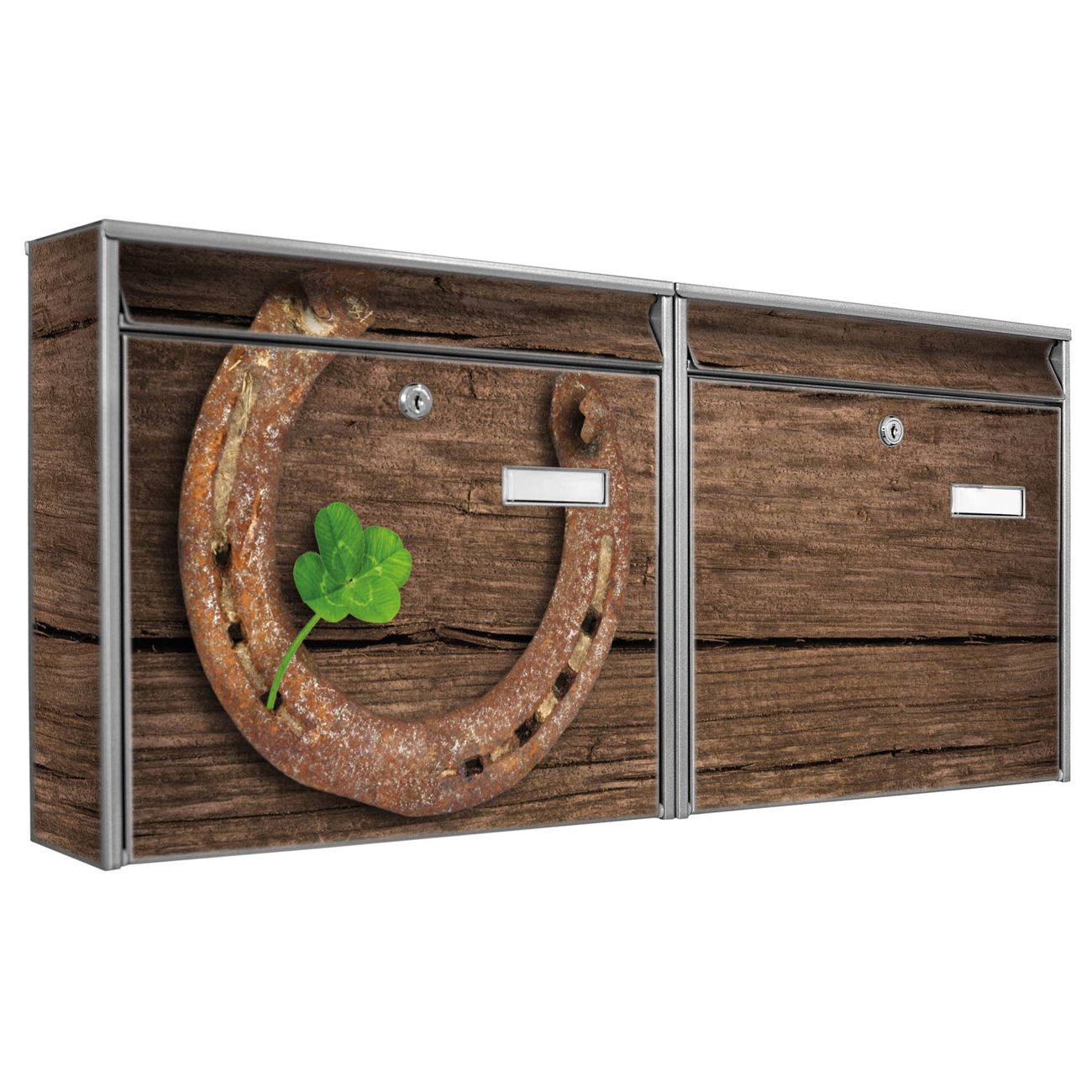 FUNKTION: Die Burg Wächter doppel Briefkastenanlage mit Motiv Doppeltes Glück bietet Ihnen ein großes Fassungsvermögen, sodass auch A4 Sendungen eingeworfen werden können. Das Namensschild lässt sich individuell beschriften. DESIGN: Die 2 Briefkästen mit Doppeltes Glück Motiv haben ein sehr ansprechendes und zeitloses Design. Heben Sie Sich von der tristen grauen Masse ab, ohne auf Funktionalität zu verzichten. Sie erhalten 2 Schlüssel sowie das Montagematerial. DETAILS: Der Doppelbriefkasten besteht aus verzinktem Stahl weiß. Er ist 72,5cm x 32,2cm x 10cm groß. Das Motiv besteht aus einer wetter- und UV-festen Folie, die Ihren Briefkasten zusätzlich vor Kratzern schützt. NUTZEN: Die stabile Bauart sowie die Wetterfestigkeit machen diese doppel Briefkästen zu einem zuverlässigen Begleiter im Alltag. Effektvoll in Reihe gehangen schmückt die Anlage jede Hauswand. BANJADO: Ihr Briefkasten wird in Sachsen in einer kleinen Manufaktur von Hand veredelt. Die Motivfolie ist lösungsmittelfrei und schutzlaminiert für einen langen Halt. Wir legen großen Wert auf die Verbindung von Funktionalität und Design. Sie erhalten Handarbeit aus Sachsen.