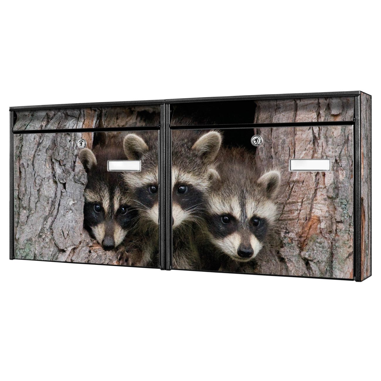 FUNKTION: Die Burg Wächter doppel Briefkastenanlage mit Motiv Drei Waschbären bietet Ihnen ein großes Fassungsvermögen, sodass auch A4 Sendungen eingeworfen werden können. Das Namensschild lässt sich individuell beschriften. DESIGN: Die 2 Briefkästen mit Drei Waschbären Motiv haben ein sehr ansprechendes und zeitloses Design. Heben Sie Sich von der tristen grauen Masse ab, ohne auf Funktionalität zu verzichten. Sie erhalten 2 Schlüssel sowie das Montagematerial. DETAILS: Der Doppelbriefkasten besteht aus verzinktem Stahl weiß. Er ist 72,5cm x 32,2cm x 10cm groß. Das Motiv besteht aus einer wetter- und UV-festen Folie, die Ihren Briefkasten zusätzlich vor Kratzern schützt. NUTZEN: Die stabile Bauart sowie die Wetterfestigkeit machen diese doppel Briefkästen zu einem zuverlässigen Begleiter im Alltag. Effektvoll in Reihe gehangen schmückt die Anlage jede Hauswand. BANJADO: Ihr Briefkasten wird in Sachsen in einer kleinen Manufaktur von Hand veredelt. Die Motivfolie ist lösungsmittelfrei und schutzlaminiert für einen langen Halt. Wir legen großen Wert auf die Verbindung von Funktionalität und Design. Sie erhalten Handarbeit aus Sachsen.