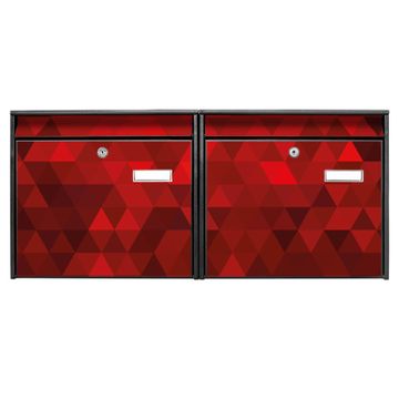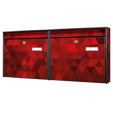 FUNKTION: Die Burg Wächter doppel Briefkastenanlage mit Motiv Dreiecke Rot bietet Ihnen ein großes Fassungsvermögen, sodass auch A4 Sendungen eingeworfen werden können. Das Namensschild lässt sich individuell beschriften. DESIGN: Die 2 Briefkästen mit Dreiecke Rot Motiv haben ein sehr ansprechendes und zeitloses Design. Heben Sie Sich von der tristen grauen Masse ab, ohne auf Funktionalität zu verzichten. Sie erhalten 2 Schlüssel sowie das Montagematerial. DETAILS: Der Doppelbriefkasten besteht aus verzinktem Stahl weiß. Er ist 72,5cm x 32,2cm x 10cm groß. Das Motiv besteht aus einer wetter- und UV-festen Folie, die Ihren Briefkasten zusätzlich vor Kratzern schützt. NUTZEN: Die stabile Bauart sowie die Wetterfestigkeit machen diese doppel Briefkästen zu einem zuverlässigen Begleiter im Alltag. Effektvoll in Reihe gehangen schmückt die Anlage jede Hauswand. BANJADO: Ihr Briefkasten wird in Sachsen in einer kleinen Manufaktur von Hand veredelt. Die Motivfolie ist lösungsmittelfrei und schutzlaminiert für einen langen Halt. Wir legen großen Wert auf die Verbindung von Funktionalität und Design. Sie erhalten Handarbeit aus Sachsen.