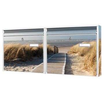 FUNKTION: Die Burg Wächter doppel Briefkastenanlage mit Motiv Dünen bietet Ihnen ein großes Fassungsvermögen, sodass auch A4 Sendungen eingeworfen werden können. Das Namensschild lässt sich individuell beschriften. DESIGN: Die 2 Briefkästen mit Dünen Motiv haben ein sehr ansprechendes und zeitloses Design. Heben Sie Sich von der tristen grauen Masse ab, ohne auf Funktionalität zu verzichten. Sie erhalten 2 Schlüssel sowie das Montagematerial. DETAILS: Der Doppelbriefkasten besteht aus verzinktem Stahl weiß. Er ist 72,5cm x 32,2cm x 10cm groß. Das Motiv besteht aus einer wetter- und UV-festen Folie, die Ihren Briefkasten zusätzlich vor Kratzern schützt. NUTZEN: Die stabile Bauart sowie die Wetterfestigkeit machen diese doppel Briefkästen zu einem zuverlässigen Begleiter im Alltag. Effektvoll in Reihe gehangen schmückt die Anlage jede Hauswand. BANJADO: Ihr Briefkasten wird in Sachsen in einer kleinen Manufaktur von Hand veredelt. Die Motivfolie ist lösungsmittelfrei und schutzlaminiert für einen langen Halt. Wir legen großen Wert auf die Verbindung von Funktionalität und Design. Sie erhalten Handarbeit aus Sachsen.