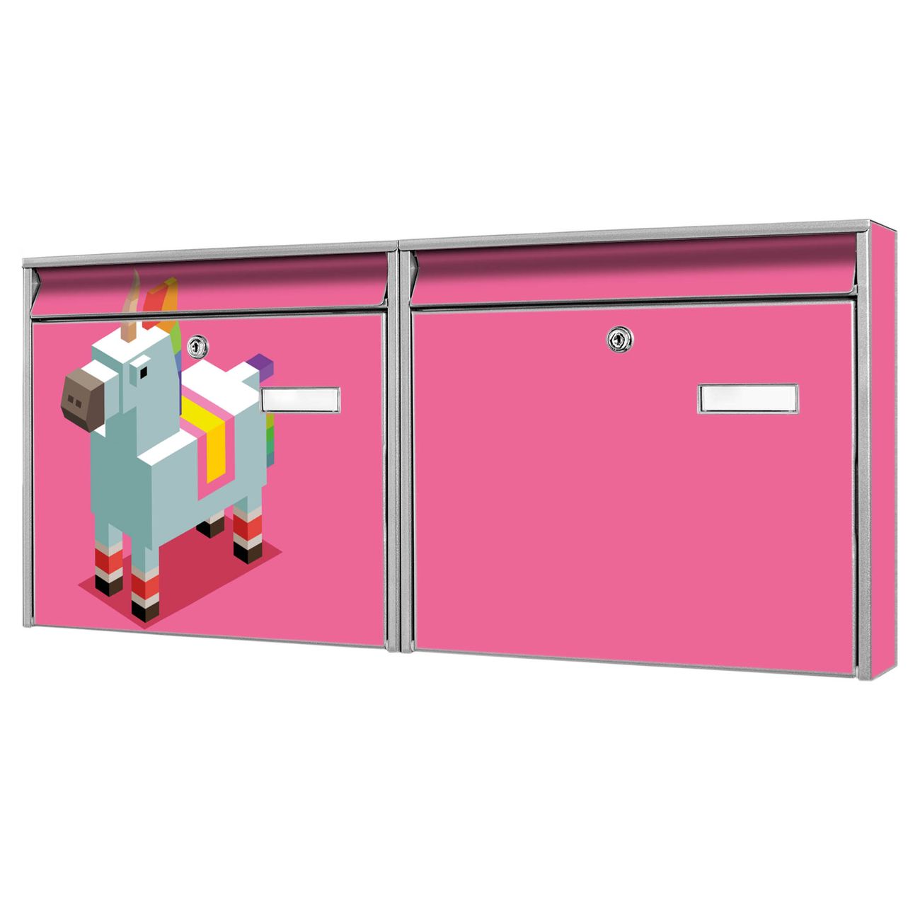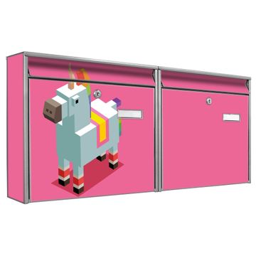 FUNKTION: Die Burg Wächter doppel Briefkastenanlage mit Motiv Einhorn Block bietet Ihnen ein großes Fassungsvermögen, sodass auch A4 Sendungen eingeworfen werden können. Das Namensschild lässt sich individuell beschriften. DESIGN: Die 2 Briefkästen mit Einhorn Block Motiv haben ein sehr ansprechendes und zeitloses Design. Heben Sie Sich von der tristen grauen Masse ab, ohne auf Funktionalität zu verzichten. Sie erhalten 2 Schlüssel sowie das Montagematerial. DETAILS: Der Doppelbriefkasten besteht aus verzinktem Stahl weiß. Er ist 72,5cm x 32,2cm x 10cm groß. Das Motiv besteht aus einer wetter- und UV-festen Folie, die Ihren Briefkasten zusätzlich vor Kratzern schützt. NUTZEN: Die stabile Bauart sowie die Wetterfestigkeit machen diese doppel Briefkästen zu einem zuverlässigen Begleiter im Alltag. Effektvoll in Reihe gehangen schmückt die Anlage jede Hauswand. BANJADO: Ihr Briefkasten wird in Sachsen in einer kleinen Manufaktur von Hand veredelt. Die Motivfolie ist lösungsmittelfrei und schutzlaminiert für einen langen Halt. Wir legen großen Wert auf die Verbindung von Funktionalität und Design. Sie erhalten Handarbeit aus Sachsen.
