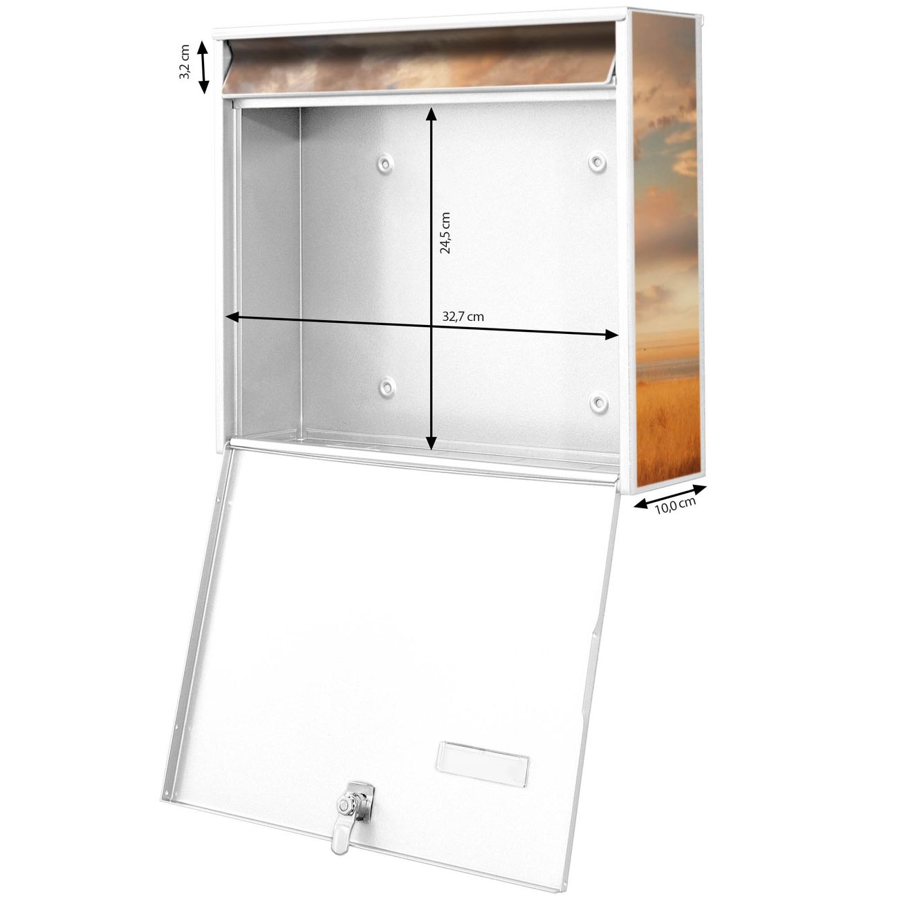 - je Briefschlitz: 34,5 x 3,8cm (B x H)