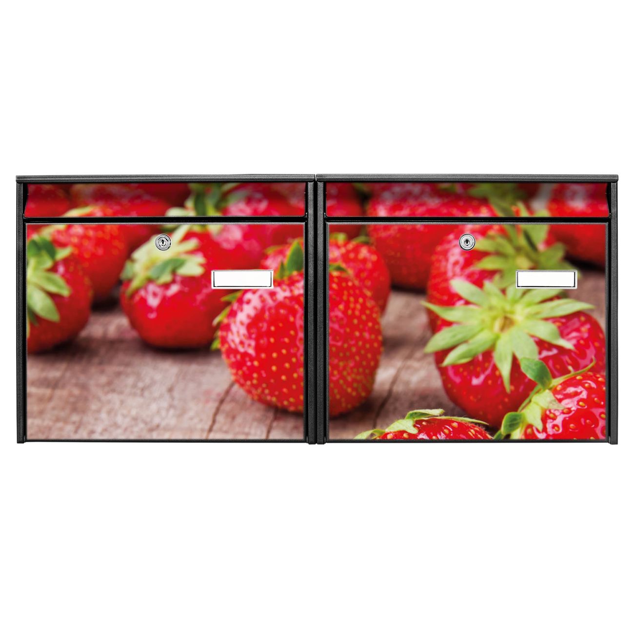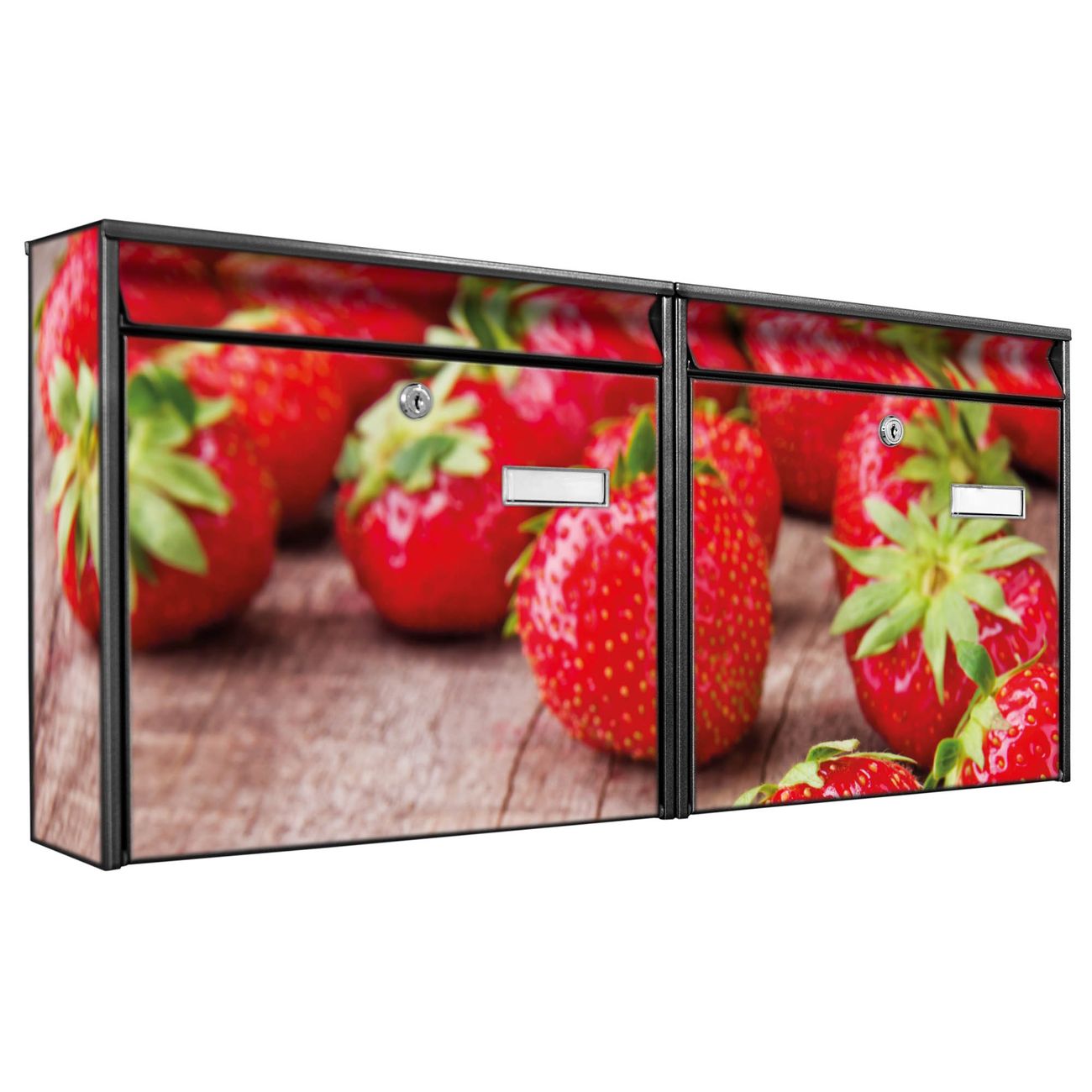 FUNKTION: Die Burg Wächter doppel Briefkastenanlage mit Motiv Erdbeeren bietet Ihnen ein großes Fassungsvermögen, sodass auch A4 Sendungen eingeworfen werden können. Das Namensschild lässt sich individuell beschriften. DESIGN: Die 2 Briefkästen mit Erdbeeren Motiv haben ein sehr ansprechendes und zeitloses Design. Heben Sie Sich von der tristen grauen Masse ab, ohne auf Funktionalität zu verzichten. Sie erhalten 2 Schlüssel sowie das Montagematerial. DETAILS: Der Doppelbriefkasten besteht aus verzinktem Stahl weiß. Er ist 72,5cm x 32,2cm x 10cm groß. Das Motiv besteht aus einer wetter- und UV-festen Folie, die Ihren Briefkasten zusätzlich vor Kratzern schützt. NUTZEN: Die stabile Bauart sowie die Wetterfestigkeit machen diese doppel Briefkästen zu einem zuverlässigen Begleiter im Alltag. Effektvoll in Reihe gehangen schmückt die Anlage jede Hauswand. BANJADO: Ihr Briefkasten wird in Sachsen in einer kleinen Manufaktur von Hand veredelt. Die Motivfolie ist lösungsmittelfrei und schutzlaminiert für einen langen Halt. Wir legen großen Wert auf die Verbindung von Funktionalität und Design. Sie erhalten Handarbeit aus Sachsen.