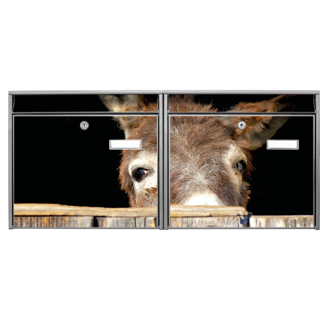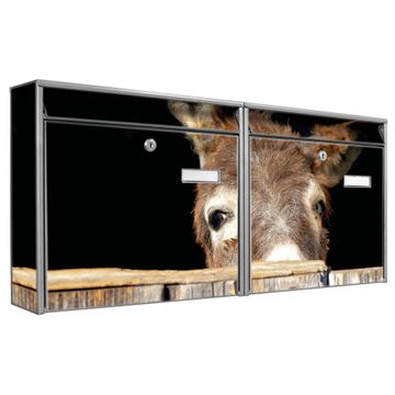 FUNKTION: Die Burg Wächter doppel Briefkastenanlage mit Motiv Esel bietet Ihnen ein großes Fassungsvermögen, sodass auch A4 Sendungen eingeworfen werden können. Das Namensschild lässt sich individuell beschriften. DESIGN: Die 2 Briefkästen mit Esel Motiv haben ein sehr ansprechendes und zeitloses Design. Heben Sie Sich von der tristen grauen Masse ab, ohne auf Funktionalität zu verzichten. Sie erhalten 2 Schlüssel sowie das Montagematerial. DETAILS: Der Doppelbriefkasten besteht aus verzinktem Stahl weiß. Er ist 72,5cm x 32,2cm x 10cm groß. Das Motiv besteht aus einer wetter- und UV-festen Folie, die Ihren Briefkasten zusätzlich vor Kratzern schützt. NUTZEN: Die stabile Bauart sowie die Wetterfestigkeit machen diese doppel Briefkästen zu einem zuverlässigen Begleiter im Alltag. Effektvoll in Reihe gehangen schmückt die Anlage jede Hauswand. BANJADO: Ihr Briefkasten wird in Sachsen in einer kleinen Manufaktur von Hand veredelt. Die Motivfolie ist lösungsmittelfrei und schutzlaminiert für einen langen Halt. Wir legen großen Wert auf die Verbindung von Funktionalität und Design. Sie erhalten Handarbeit aus Sachsen.