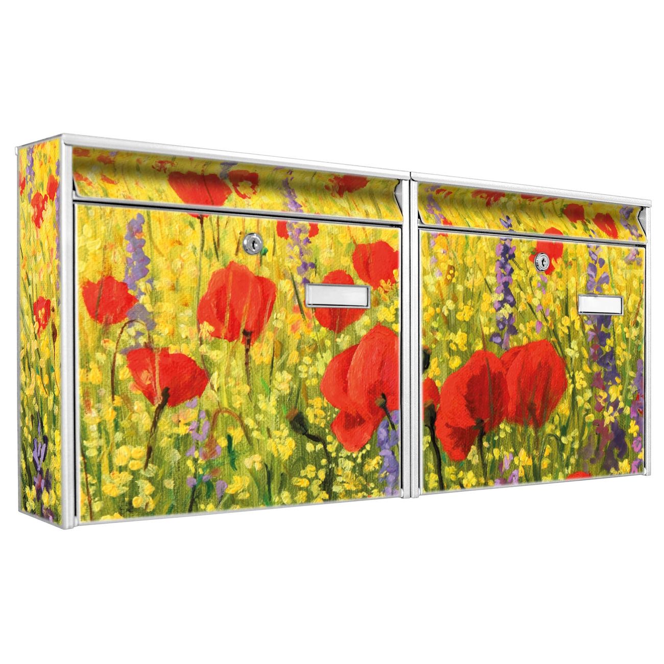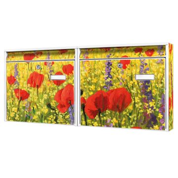 Doppelbriefkasten quer Feld Mit Mohnblumen