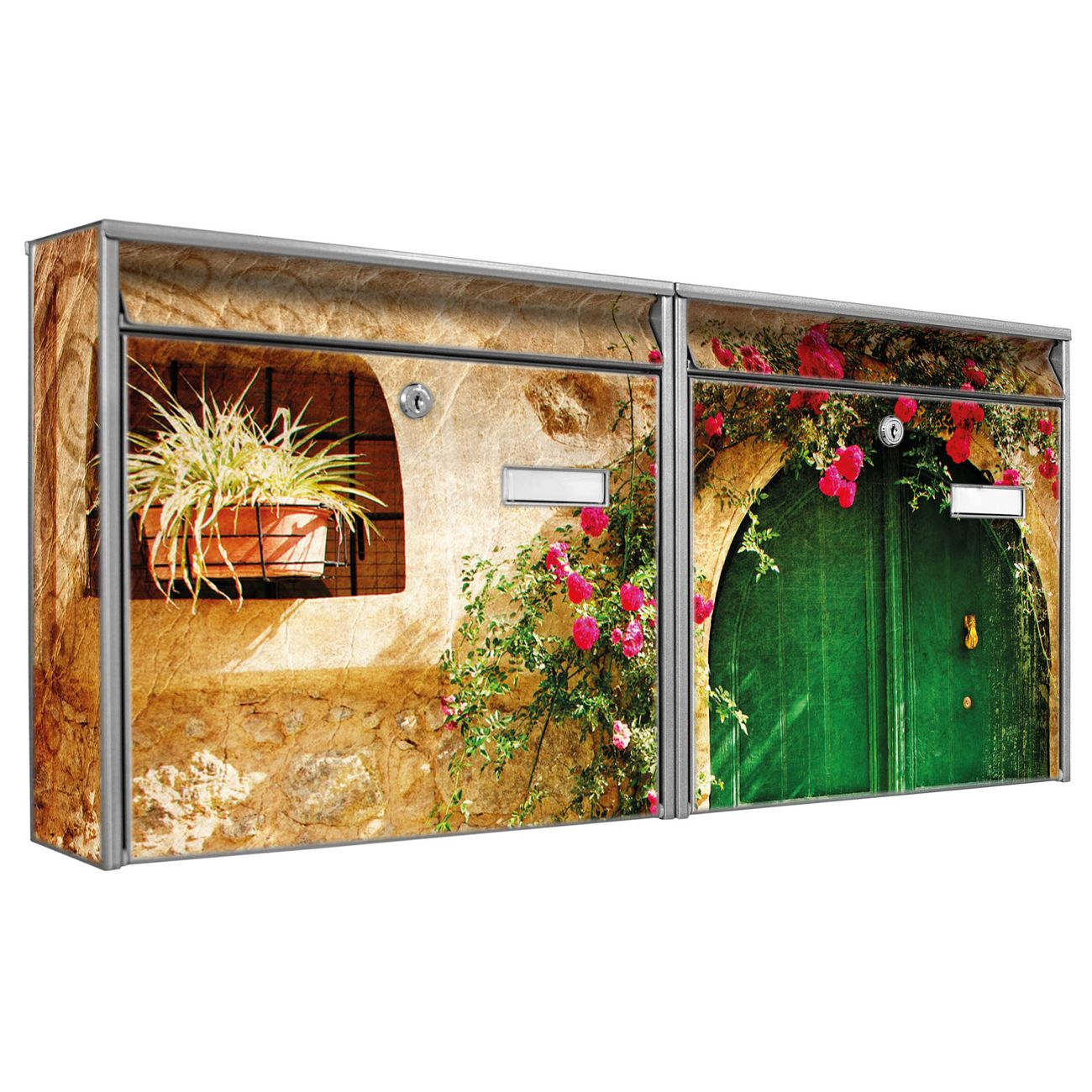 FUNKTION: Die Burg Wächter doppel Briefkastenanlage mit Motiv Ferienhaus bietet Ihnen ein großes Fassungsvermögen, sodass auch A4 Sendungen eingeworfen werden können. Das Namensschild lässt sich individuell beschriften. DESIGN: Die 2 Briefkästen mit Ferienhaus Motiv haben ein sehr ansprechendes und zeitloses Design. Heben Sie Sich von der tristen grauen Masse ab, ohne auf Funktionalität zu verzichten. Sie erhalten 2 Schlüssel sowie das Montagematerial. DETAILS: Der Doppelbriefkasten besteht aus verzinktem Stahl weiß. Er ist 72,5cm x 32,2cm x 10cm groß. Das Motiv besteht aus einer wetter- und UV-festen Folie, die Ihren Briefkasten zusätzlich vor Kratzern schützt. NUTZEN: Die stabile Bauart sowie die Wetterfestigkeit machen diese doppel Briefkästen zu einem zuverlässigen Begleiter im Alltag. Effektvoll in Reihe gehangen schmückt die Anlage jede Hauswand. BANJADO: Ihr Briefkasten wird in Sachsen in einer kleinen Manufaktur von Hand veredelt. Die Motivfolie ist lösungsmittelfrei und schutzlaminiert für einen langen Halt. Wir legen großen Wert auf die Verbindung von Funktionalität und Design. Sie erhalten Handarbeit aus Sachsen.