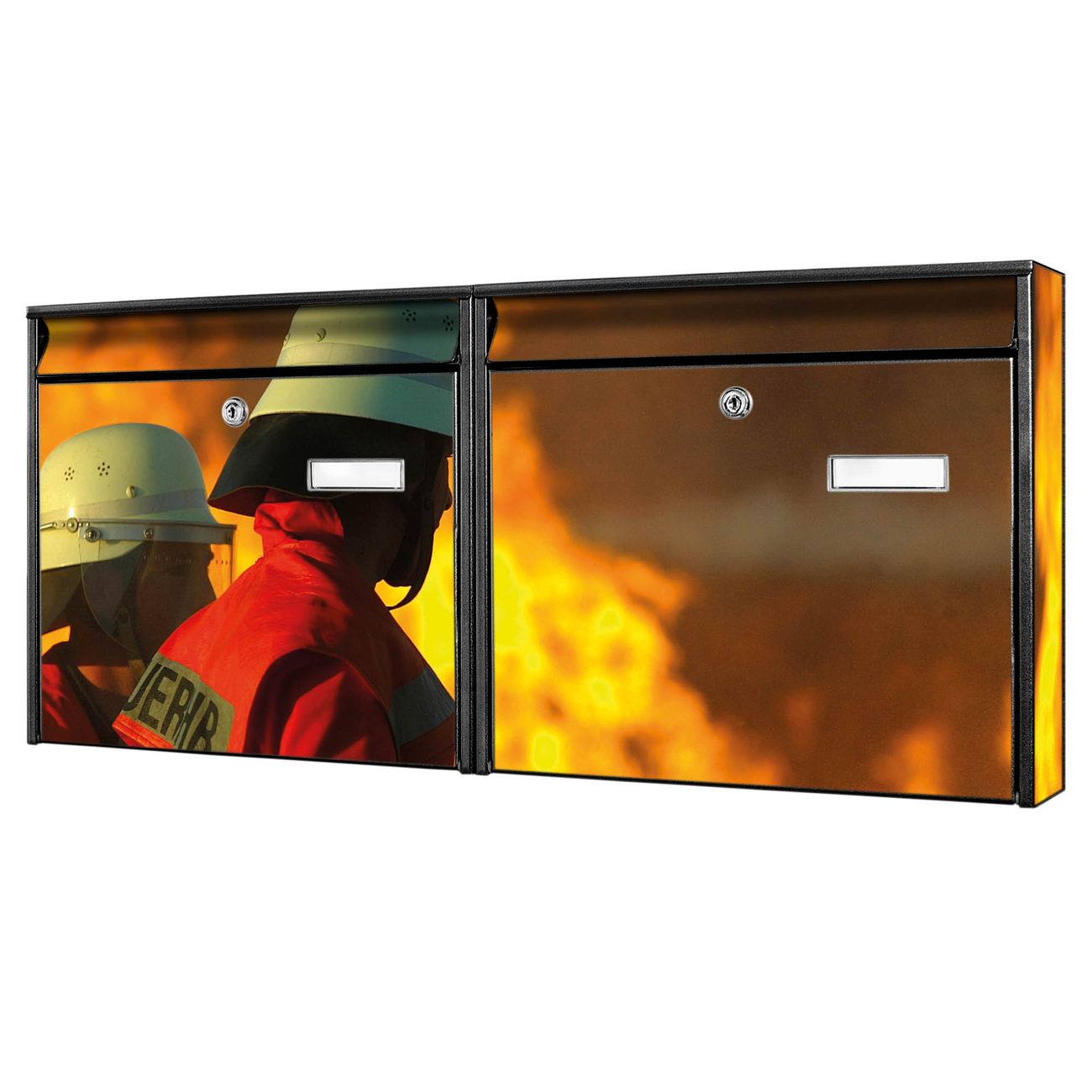 FUNKTION: Die Burg Wächter doppel Briefkastenanlage mit Motiv Feuer bietet Ihnen ein großes Fassungsvermögen, sodass auch A4 Sendungen eingeworfen werden können. Das Namensschild lässt sich individuell beschriften. DESIGN: Die 2 Briefkästen mit Feuer Motiv haben ein sehr ansprechendes und zeitloses Design. Heben Sie Sich von der tristen grauen Masse ab, ohne auf Funktionalität zu verzichten. Sie erhalten 2 Schlüssel sowie das Montagematerial. DETAILS: Der Doppelbriefkasten besteht aus verzinktem Stahl weiß. Er ist 72,5cm x 32,2cm x 10cm groß. Das Motiv besteht aus einer wetter- und UV-festen Folie, die Ihren Briefkasten zusätzlich vor Kratzern schützt. NUTZEN: Die stabile Bauart sowie die Wetterfestigkeit machen diese doppel Briefkästen zu einem zuverlässigen Begleiter im Alltag. Effektvoll in Reihe gehangen schmückt die Anlage jede Hauswand. BANJADO: Ihr Briefkasten wird in Sachsen in einer kleinen Manufaktur von Hand veredelt. Die Motivfolie ist lösungsmittelfrei und schutzlaminiert für einen langen Halt. Wir legen großen Wert auf die Verbindung von Funktionalität und Design. Sie erhalten Handarbeit aus Sachsen.