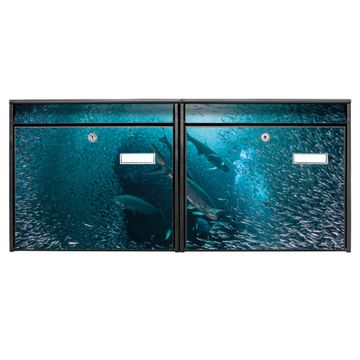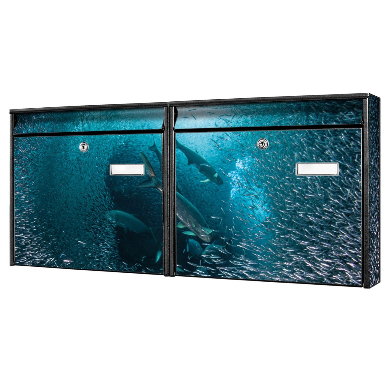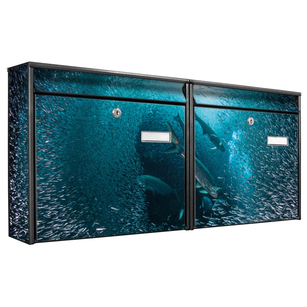 FUNKTION: Die Burg Wächter doppel Briefkastenanlage mit Motiv Fische im Meer bietet Ihnen ein großes Fassungsvermögen, sodass auch A4 Sendungen eingeworfen werden können. Das Namensschild lässt sich individuell beschriften. DESIGN: Die 2 Briefkästen mit Fische im Meer Motiv haben ein sehr ansprechendes und zeitloses Design. Heben Sie Sich von der tristen grauen Masse ab, ohne auf Funktionalität zu verzichten. Sie erhalten 2 Schlüssel sowie das Montagematerial. DETAILS: Der Doppelbriefkasten besteht aus verzinktem Stahl weiß. Er ist 72,5cm x 32,2cm x 10cm groß. Das Motiv besteht aus einer wetter- und UV-festen Folie, die Ihren Briefkasten zusätzlich vor Kratzern schützt. NUTZEN: Die stabile Bauart sowie die Wetterfestigkeit machen diese doppel Briefkästen zu einem zuverlässigen Begleiter im Alltag. Effektvoll in Reihe gehangen schmückt die Anlage jede Hauswand. BANJADO: Ihr Briefkasten wird in Sachsen in einer kleinen Manufaktur von Hand veredelt. Die Motivfolie ist lösungsmittelfrei und schutzlaminiert für einen langen Halt. Wir legen großen Wert auf die Verbindung von Funktionalität und Design. Sie erhalten Handarbeit aus Sachsen.