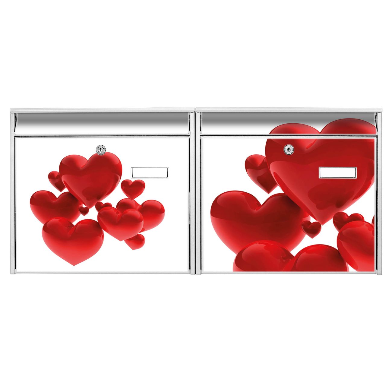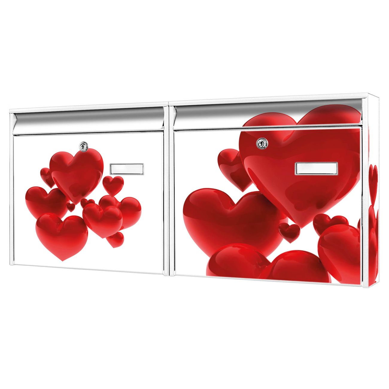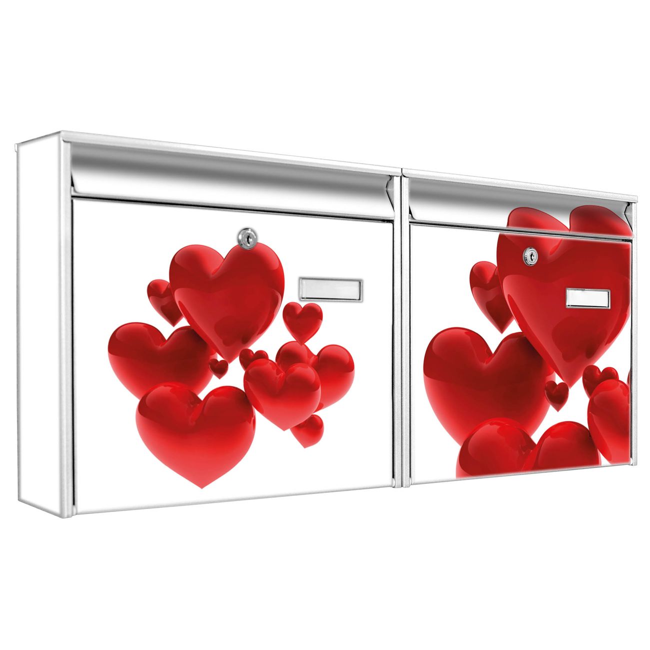 Doppelbriefkasten quer Fliegende Herzen