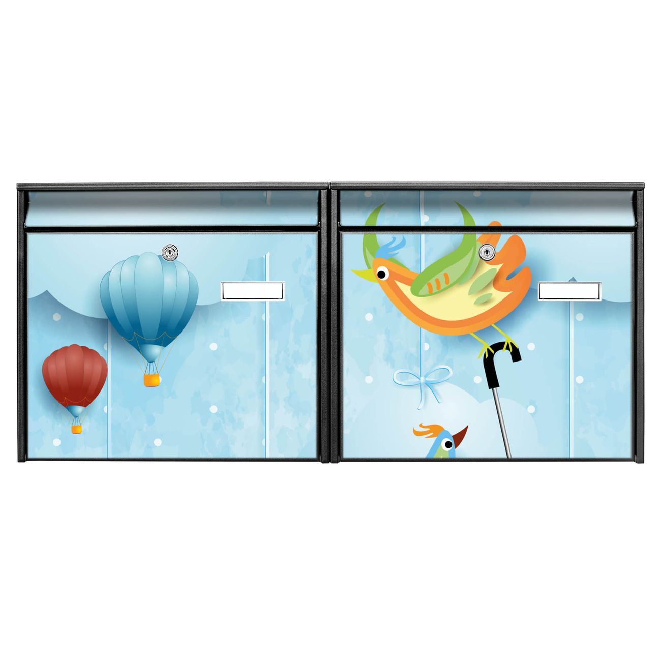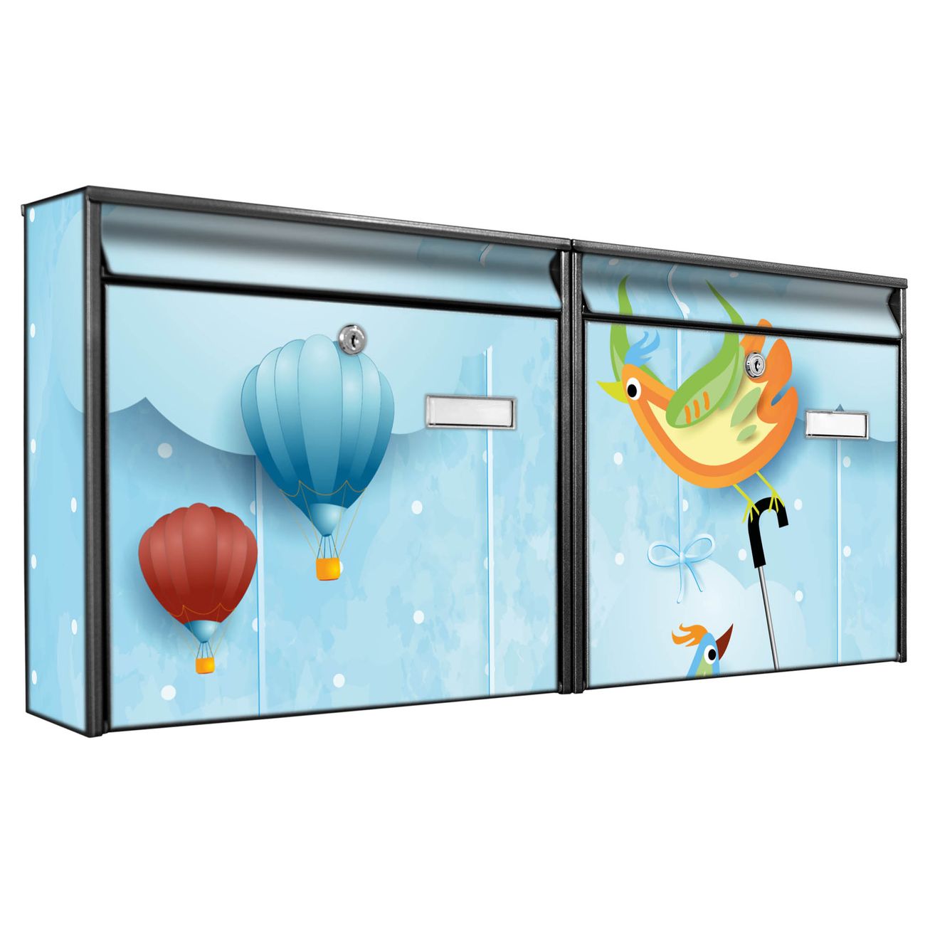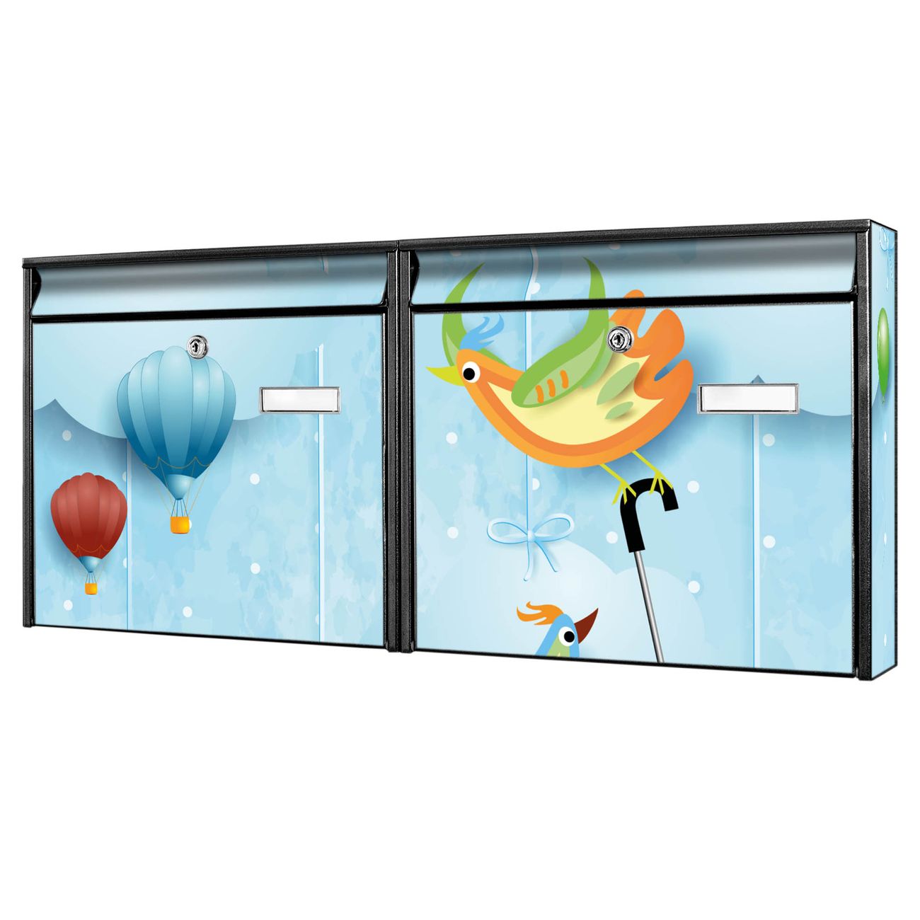 FUNKTION: Die Burg Wächter doppel Briefkastenanlage mit Motiv fliegender Regenschirm bietet Ihnen ein großes Fassungsvermögen, sodass auch A4 Sendungen eingeworfen werden können. Das Namensschild lässt sich individuell beschriften. DESIGN: Die 2 Briefkästen mit fliegender Regenschirm Motiv haben ein sehr ansprechendes und zeitloses Design. Heben Sie Sich von der tristen grauen Masse ab, ohne auf Funktionalität zu verzichten. Sie erhalten 2 Schlüssel sowie das Montagematerial. DETAILS: Der Doppelbriefkasten besteht aus verzinktem Stahl weiß. Er ist 72,5cm x 32,2cm x 10cm groß. Das Motiv besteht aus einer wetter- und UV-festen Folie, die Ihren Briefkasten zusätzlich vor Kratzern schützt. NUTZEN: Die stabile Bauart sowie die Wetterfestigkeit machen diese doppel Briefkästen zu einem zuverlässigen Begleiter im Alltag. Effektvoll in Reihe gehangen schmückt die Anlage jede Hauswand. BANJADO: Ihr Briefkasten wird in Sachsen in einer kleinen Manufaktur von Hand veredelt. Die Motivfolie ist lösungsmittelfrei und schutzlaminiert für einen langen Halt. Wir legen großen Wert auf die Verbindung von Funktionalität und Design. Sie erhalten Handarbeit aus Sachsen.