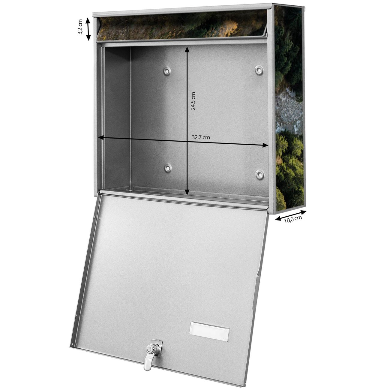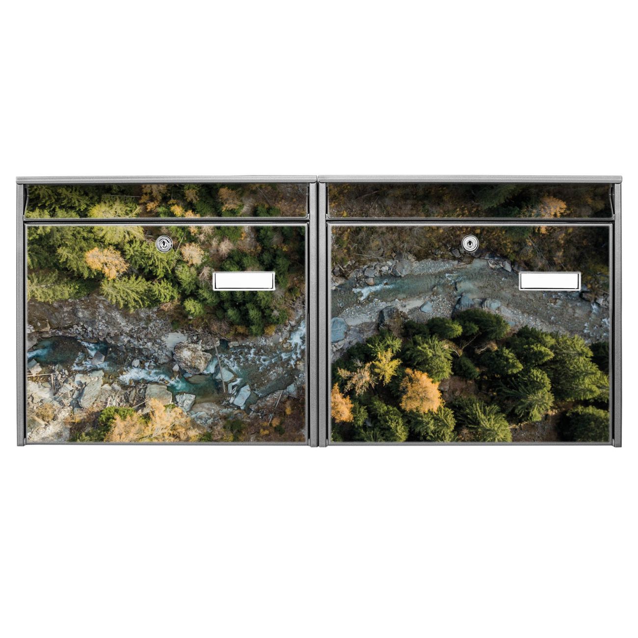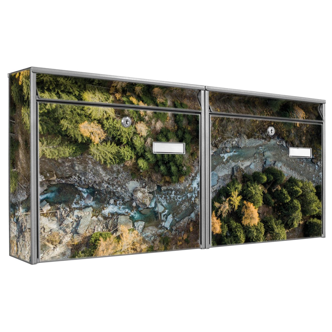 FUNKTION: Die Burg Wächter doppel Briefkastenanlage mit Motiv Fluss im Tal 2 bietet Ihnen ein großes Fassungsvermögen, sodass auch A4 Sendungen eingeworfen werden können. Das Namensschild lässt sich individuell beschriften. DESIGN: Die 2 Briefkästen mit Fluss im Tal 2 Motiv haben ein sehr ansprechendes und zeitloses Design. Heben Sie Sich von der tristen grauen Masse ab, ohne auf Funktionalität zu verzichten. Sie erhalten 2 Schlüssel sowie das Montagematerial. DETAILS: Der Doppelbriefkasten besteht aus verzinktem Stahl weiß. Er ist 72,5cm x 32,2cm x 10cm groß. Das Motiv besteht aus einer wetter- und UV-festen Folie, die Ihren Briefkasten zusätzlich vor Kratzern schützt. NUTZEN: Die stabile Bauart sowie die Wetterfestigkeit machen diese doppel Briefkästen zu einem zuverlässigen Begleiter im Alltag. Effektvoll in Reihe gehangen schmückt die Anlage jede Hauswand. BANJADO: Ihr Briefkasten wird in Sachsen in einer kleinen Manufaktur von Hand veredelt. Die Motivfolie ist lösungsmittelfrei und schutzlaminiert für einen langen Halt. Wir legen großen Wert auf die Verbindung von Funktionalität und Design. Sie erhalten Handarbeit aus Sachsen.
