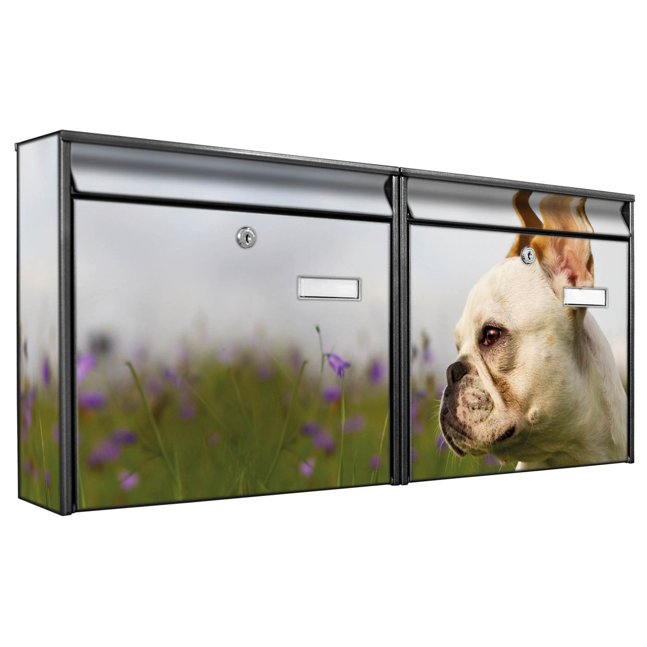 Doppelbriefkasten quer Französische Bulldogge