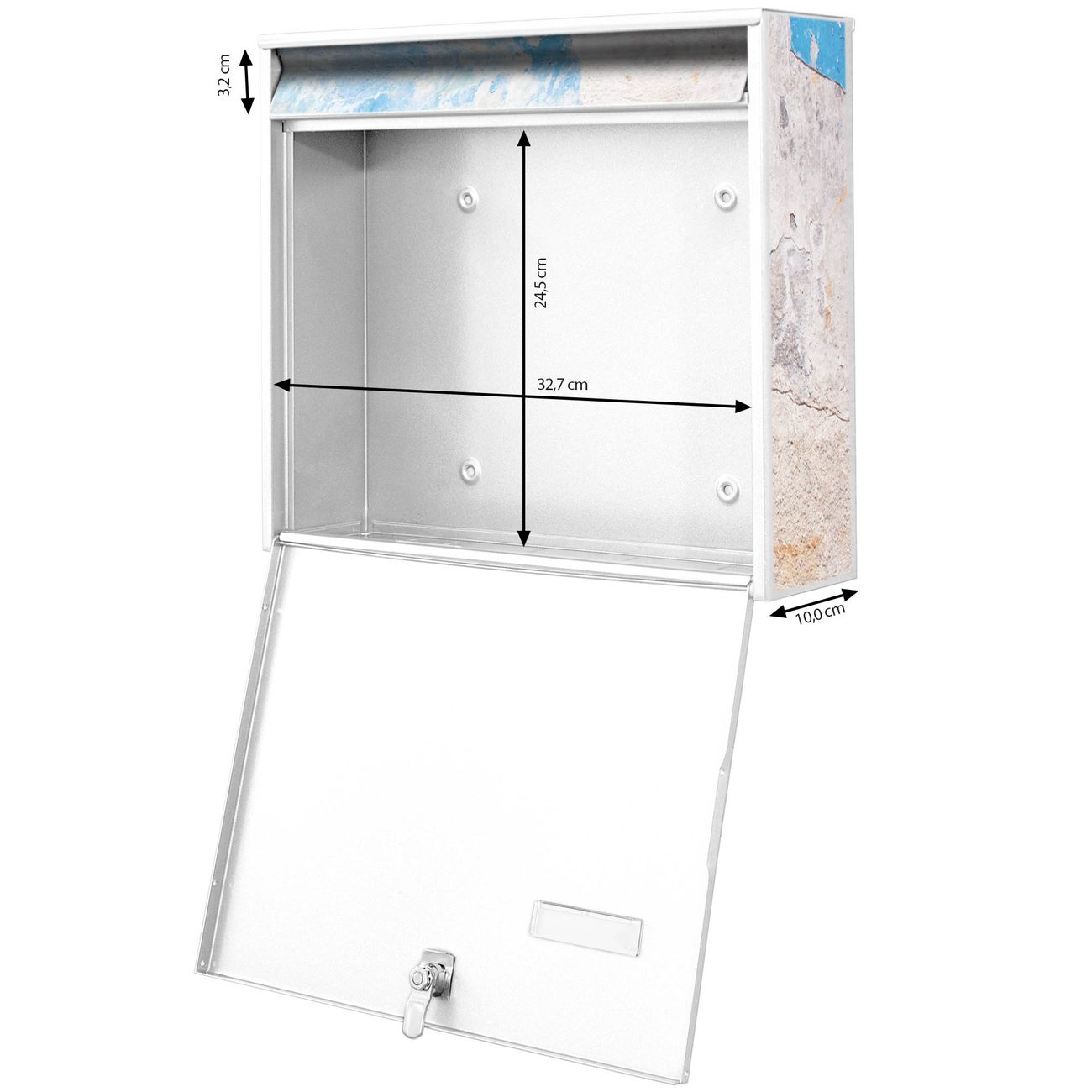 - je Briefkasten: 36,2x32,2x10cm BxHxT