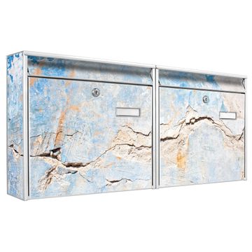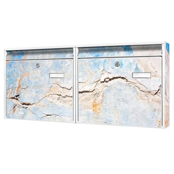 FUNKTION: Die Burg Wächter doppel Briefkastenanlage mit Motiv Gebrochene Wand bietet Ihnen ein großes Fassungsvermögen, sodass auch A4 Sendungen eingeworfen werden können. Das Namensschild lässt sich individuell beschriften. DESIGN: Die 2 Briefkästen mit Gebrochene Wand Motiv haben ein sehr ansprechendes und zeitloses Design. Heben Sie Sich von der tristen grauen Masse ab, ohne auf Funktionalität zu verzichten. Sie erhalten 2 Schlüssel sowie das Montagematerial. DETAILS: Der Doppelbriefkasten besteht aus verzinktem Stahl weiß. Er ist 72,5cm x 32,2cm x 10cm groß. Das Motiv besteht aus einer wetter- und UV-festen Folie, die Ihren Briefkasten zusätzlich vor Kratzern schützt. NUTZEN: Die stabile Bauart sowie die Wetterfestigkeit machen diese doppel Briefkästen zu einem zuverlässigen Begleiter im Alltag. Effektvoll in Reihe gehangen schmückt die Anlage jede Hauswand. BANJADO: Ihr Briefkasten wird in Sachsen in einer kleinen Manufaktur von Hand veredelt. Die Motivfolie ist lösungsmittelfrei und schutzlaminiert für einen langen Halt. Wir legen großen Wert auf die Verbindung von Funktionalität und Design. Sie erhalten Handarbeit aus Sachsen.