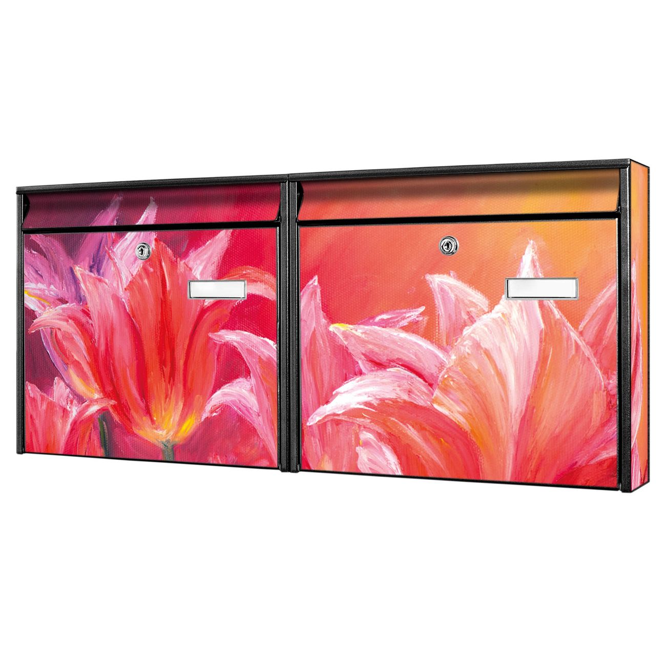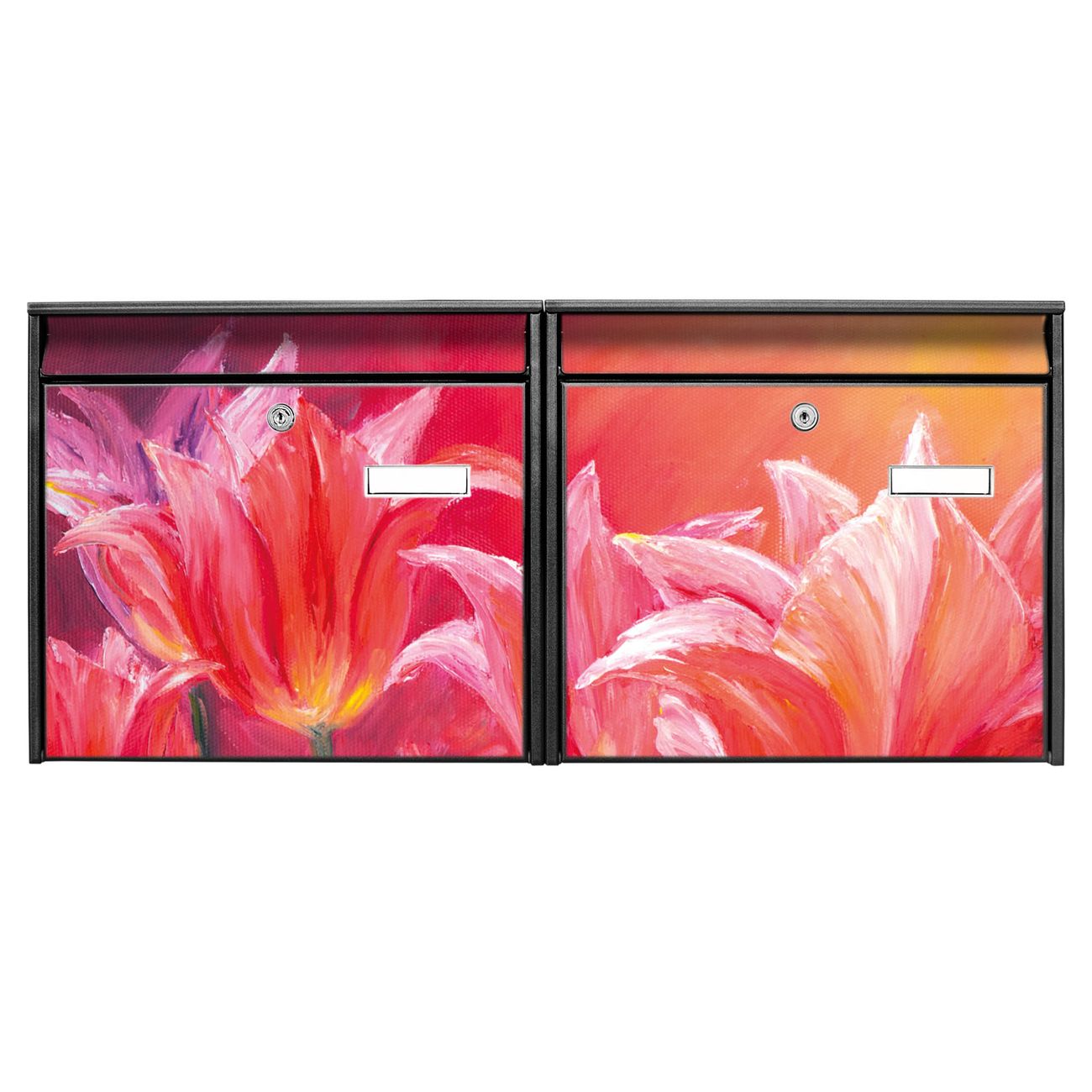 FUNKTION: Die Burg Wächter doppel Briefkastenanlage mit Motiv Gemalte Tulpen bietet Ihnen ein großes Fassungsvermögen, sodass auch A4 Sendungen eingeworfen werden können. Das Namensschild lässt sich individuell beschriften. DESIGN: Die 2 Briefkästen mit Gemalte Tulpen Motiv haben ein sehr ansprechendes und zeitloses Design. Heben Sie Sich von der tristen grauen Masse ab, ohne auf Funktionalität zu verzichten. Sie erhalten 2 Schlüssel sowie das Montagematerial. DETAILS: Der Doppelbriefkasten besteht aus verzinktem Stahl weiß. Er ist 72,5cm x 32,2cm x 10cm groß. Das Motiv besteht aus einer wetter- und UV-festen Folie, die Ihren Briefkasten zusätzlich vor Kratzern schützt. NUTZEN: Die stabile Bauart sowie die Wetterfestigkeit machen diese doppel Briefkästen zu einem zuverlässigen Begleiter im Alltag. Effektvoll in Reihe gehangen schmückt die Anlage jede Hauswand. BANJADO: Ihr Briefkasten wird in Sachsen in einer kleinen Manufaktur von Hand veredelt. Die Motivfolie ist lösungsmittelfrei und schutzlaminiert für einen langen Halt. Wir legen großen Wert auf die Verbindung von Funktionalität und Design. Sie erhalten Handarbeit aus Sachsen.