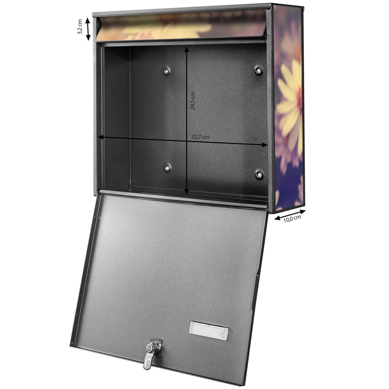 FUNKTION: Die Burg Wächter doppel Briefkastenanlage mit Motiv Gerbera 3 bietet Ihnen ein großes Fassungsvermögen, sodass auch A4 Sendungen eingeworfen werden können. Das Namensschild lässt sich individuell beschriften. DESIGN: Die 2 Briefkästen mit Gerbera 3 Motiv haben ein sehr ansprechendes und zeitloses Design. Heben Sie Sich von der tristen grauen Masse ab, ohne auf Funktionalität zu verzichten. Sie erhalten 2 Schlüssel sowie das Montagematerial. DETAILS: Der Doppelbriefkasten besteht aus verzinktem Stahl weiß. Er ist 72,5cm x 32,2cm x 10cm groß. Das Motiv besteht aus einer wetter- und UV-festen Folie, die Ihren Briefkasten zusätzlich vor Kratzern schützt. NUTZEN: Die stabile Bauart sowie die Wetterfestigkeit machen diese doppel Briefkästen zu einem zuverlässigen Begleiter im Alltag. Effektvoll in Reihe gehangen schmückt die Anlage jede Hauswand. BANJADO: Ihr Briefkasten wird in Sachsen in einer kleinen Manufaktur von Hand veredelt. Die Motivfolie ist lösungsmittelfrei und schutzlaminiert für einen langen Halt. Wir legen großen Wert auf die Verbindung von Funktionalität und Design. Sie erhalten Handarbeit aus Sachsen.