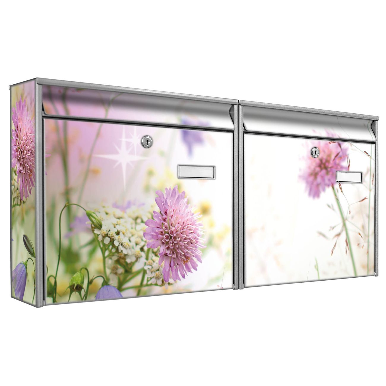 FUNKTION: Die Burg Wächter doppel Briefkastenanlage mit Motiv Glitzernde Wiese bietet Ihnen ein großes Fassungsvermögen, sodass auch A4 Sendungen eingeworfen werden können. Das Namensschild lässt sich individuell beschriften. DESIGN: Die 2 Briefkästen mit Glitzernde Wiese Motiv haben ein sehr ansprechendes und zeitloses Design. Heben Sie Sich von der tristen grauen Masse ab, ohne auf Funktionalität zu verzichten. Sie erhalten 2 Schlüssel sowie das Montagematerial. DETAILS: Der Doppelbriefkasten besteht aus verzinktem Stahl weiß. Er ist 72,5cm x 32,2cm x 10cm groß. Das Motiv besteht aus einer wetter- und UV-festen Folie, die Ihren Briefkasten zusätzlich vor Kratzern schützt. NUTZEN: Die stabile Bauart sowie die Wetterfestigkeit machen diese doppel Briefkästen zu einem zuverlässigen Begleiter im Alltag. Effektvoll in Reihe gehangen schmückt die Anlage jede Hauswand. BANJADO: Ihr Briefkasten wird in Sachsen in einer kleinen Manufaktur von Hand veredelt. Die Motivfolie ist lösungsmittelfrei und schutzlaminiert für einen langen Halt. Wir legen großen Wert auf die Verbindung von Funktionalität und Design. Sie erhalten Handarbeit aus Sachsen.