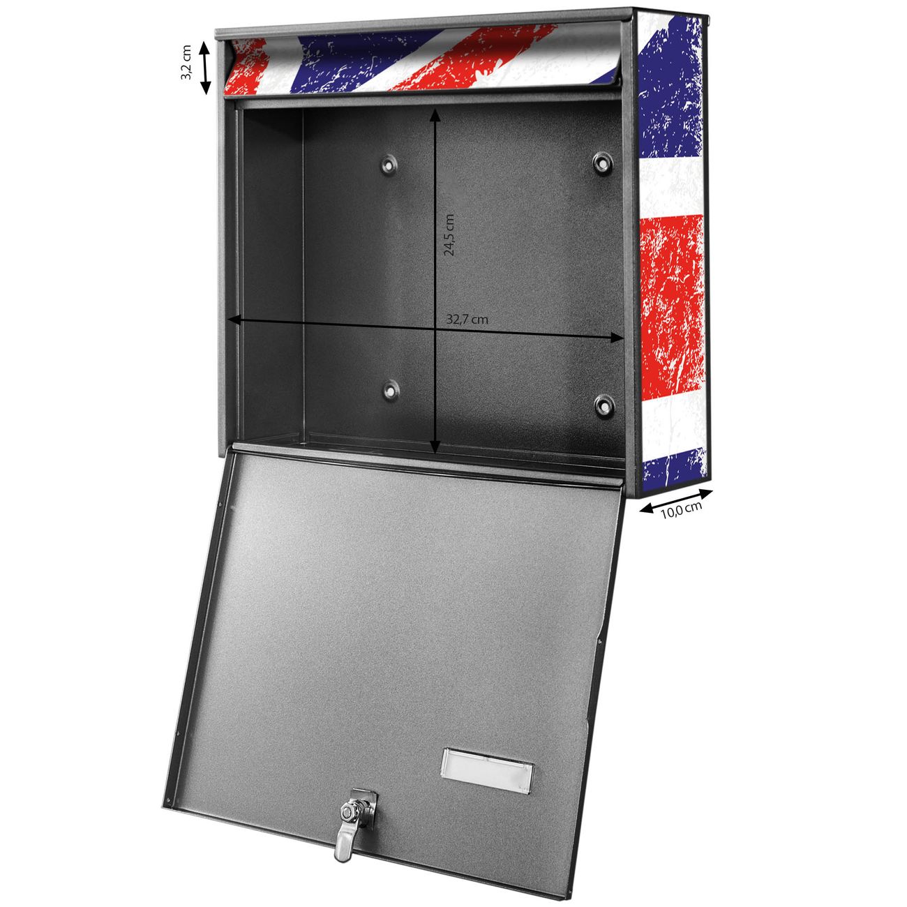 FUNKTION: Die Burg Wächter doppel Briefkastenanlage mit Motiv Great Britain bietet Ihnen ein großes Fassungsvermögen, sodass auch A4 Sendungen eingeworfen werden können. Das Namensschild lässt sich individuell beschriften. DESIGN: Die 2 Briefkästen mit Great Britain Motiv haben ein sehr ansprechendes und zeitloses Design. Heben Sie Sich von der tristen grauen Masse ab, ohne auf Funktionalität zu verzichten. Sie erhalten 2 Schlüssel sowie das Montagematerial. DETAILS: Der Doppelbriefkasten besteht aus verzinktem Stahl weiß. Er ist 72,5cm x 32,2cm x 10cm groß. Das Motiv besteht aus einer wetter- und UV-festen Folie, die Ihren Briefkasten zusätzlich vor Kratzern schützt. NUTZEN: Die stabile Bauart sowie die Wetterfestigkeit machen diese doppel Briefkästen zu einem zuverlässigen Begleiter im Alltag. Effektvoll in Reihe gehangen schmückt die Anlage jede Hauswand. BANJADO: Ihr Briefkasten wird in Sachsen in einer kleinen Manufaktur von Hand veredelt. Die Motivfolie ist lösungsmittelfrei und schutzlaminiert für einen langen Halt. Wir legen großen Wert auf die Verbindung von Funktionalität und Design. Sie erhalten Handarbeit aus Sachsen.
