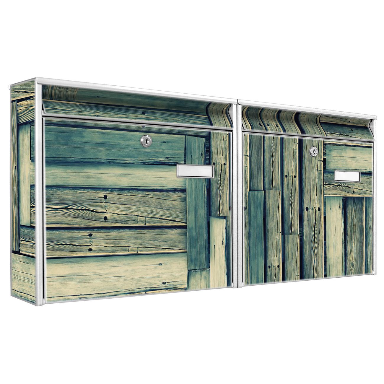 FUNKTION: Die Burg Wächter doppel Briefkastenanlage mit Motiv Grüne Planken bietet Ihnen ein großes Fassungsvermögen, sodass auch A4 Sendungen eingeworfen werden können. Das Namensschild lässt sich individuell beschriften. DESIGN: Die 2 Briefkästen mit Grüne Planken Motiv haben ein sehr ansprechendes und zeitloses Design. Heben Sie Sich von der tristen grauen Masse ab, ohne auf Funktionalität zu verzichten. Sie erhalten 2 Schlüssel sowie das Montagematerial. DETAILS: Der Doppelbriefkasten besteht aus verzinktem Stahl weiß. Er ist 72,5cm x 32,2cm x 10cm groß. Das Motiv besteht aus einer wetter- und UV-festen Folie, die Ihren Briefkasten zusätzlich vor Kratzern schützt. NUTZEN: Die stabile Bauart sowie die Wetterfestigkeit machen diese doppel Briefkästen zu einem zuverlässigen Begleiter im Alltag. Effektvoll in Reihe gehangen schmückt die Anlage jede Hauswand. BANJADO: Ihr Briefkasten wird in Sachsen in einer kleinen Manufaktur von Hand veredelt. Die Motivfolie ist lösungsmittelfrei und schutzlaminiert für einen langen Halt. Wir legen großen Wert auf die Verbindung von Funktionalität und Design. Sie erhalten Handarbeit aus Sachsen.