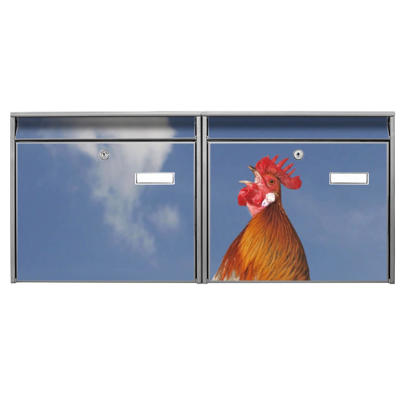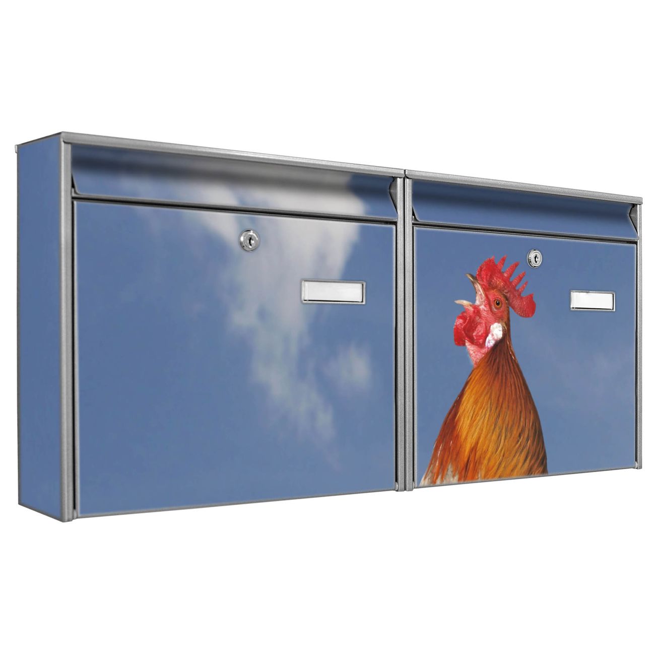 FUNKTION: Die Burg Wächter doppel Briefkastenanlage mit Motiv Hahn bietet Ihnen ein großes Fassungsvermögen, sodass auch A4 Sendungen eingeworfen werden können. Das Namensschild lässt sich individuell beschriften. DESIGN: Die 2 Briefkästen mit Hahn Motiv haben ein sehr ansprechendes und zeitloses Design. Heben Sie Sich von der tristen grauen Masse ab, ohne auf Funktionalität zu verzichten. Sie erhalten 2 Schlüssel sowie das Montagematerial. DETAILS: Der Doppelbriefkasten besteht aus verzinktem Stahl weiß. Er ist 72,5cm x 32,2cm x 10cm groß. Das Motiv besteht aus einer wetter- und UV-festen Folie, die Ihren Briefkasten zusätzlich vor Kratzern schützt. NUTZEN: Die stabile Bauart sowie die Wetterfestigkeit machen diese doppel Briefkästen zu einem zuverlässigen Begleiter im Alltag. Effektvoll in Reihe gehangen schmückt die Anlage jede Hauswand. BANJADO: Ihr Briefkasten wird in Sachsen in einer kleinen Manufaktur von Hand veredelt. Die Motivfolie ist lösungsmittelfrei und schutzlaminiert für einen langen Halt. Wir legen großen Wert auf die Verbindung von Funktionalität und Design. Sie erhalten Handarbeit aus Sachsen.
