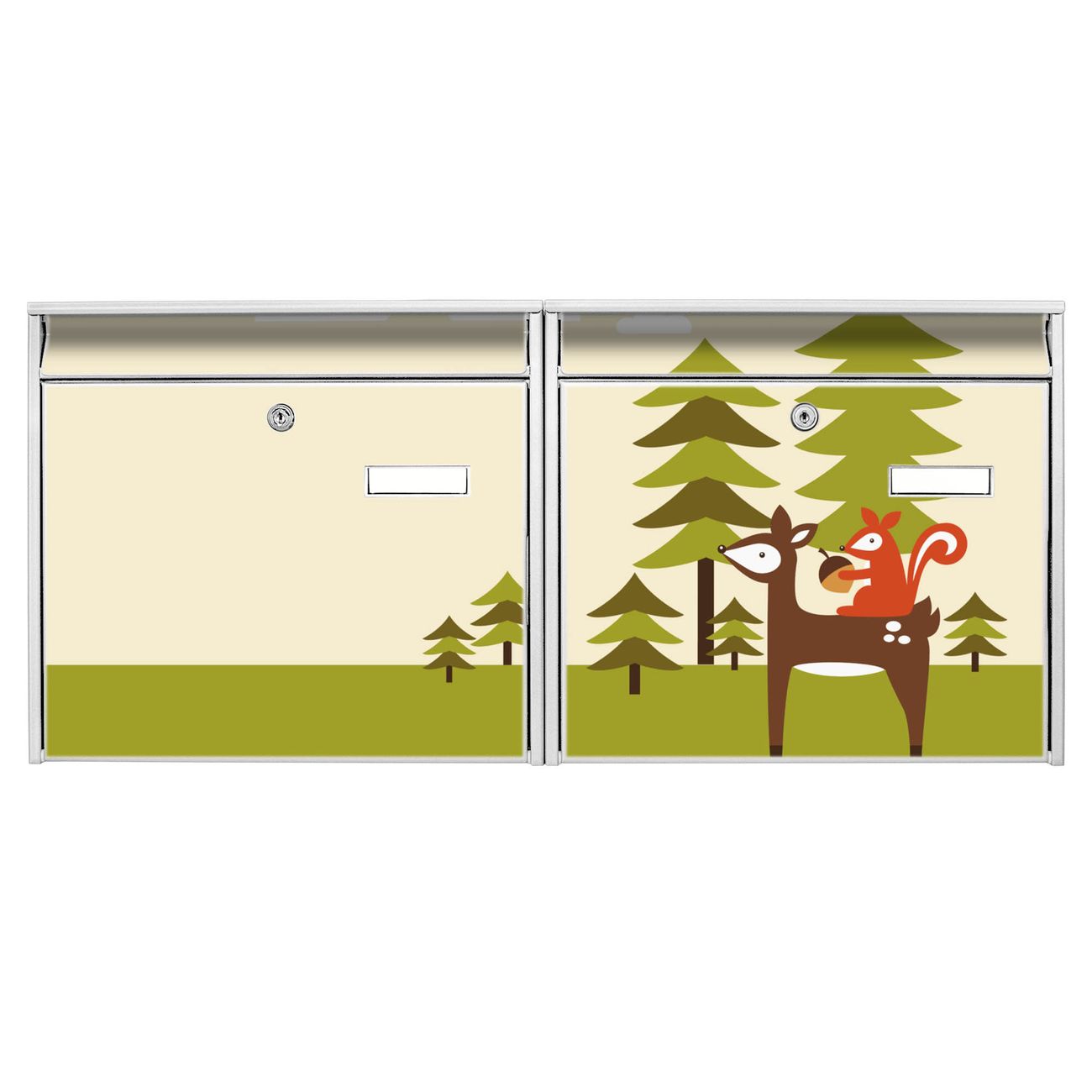 FUNKTION: Die Burg Wächter doppel Briefkastenanlage mit Motiv Heimweg bietet Ihnen ein großes Fassungsvermögen, sodass auch A4 Sendungen eingeworfen werden können. Das Namensschild lässt sich individuell beschriften. DESIGN: Die 2 Briefkästen mit Heimweg Motiv haben ein sehr ansprechendes und zeitloses Design. Heben Sie Sich von der tristen grauen Masse ab, ohne auf Funktionalität zu verzichten. Sie erhalten 2 Schlüssel sowie das Montagematerial. DETAILS: Der Doppelbriefkasten besteht aus verzinktem Stahl weiß. Er ist 72,5cm x 32,2cm x 10cm groß. Das Motiv besteht aus einer wetter- und UV-festen Folie, die Ihren Briefkasten zusätzlich vor Kratzern schützt. NUTZEN: Die stabile Bauart sowie die Wetterfestigkeit machen diese doppel Briefkästen zu einem zuverlässigen Begleiter im Alltag. Effektvoll in Reihe gehangen schmückt die Anlage jede Hauswand. BANJADO: Ihr Briefkasten wird in Sachsen in einer kleinen Manufaktur von Hand veredelt. Die Motivfolie ist lösungsmittelfrei und schutzlaminiert für einen langen Halt. Wir legen großen Wert auf die Verbindung von Funktionalität und Design. Sie erhalten Handarbeit aus Sachsen.